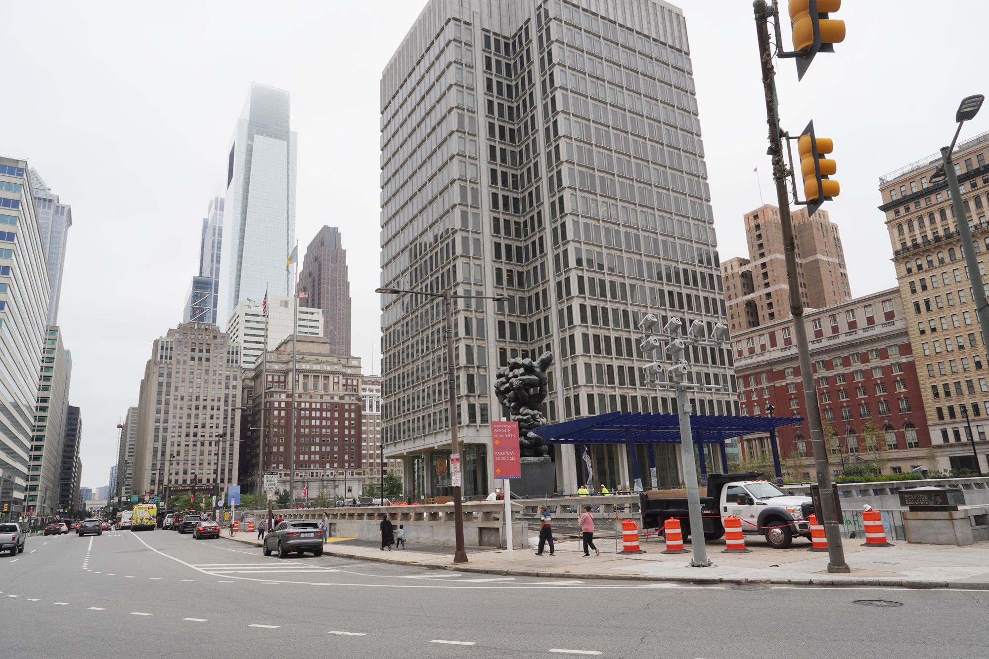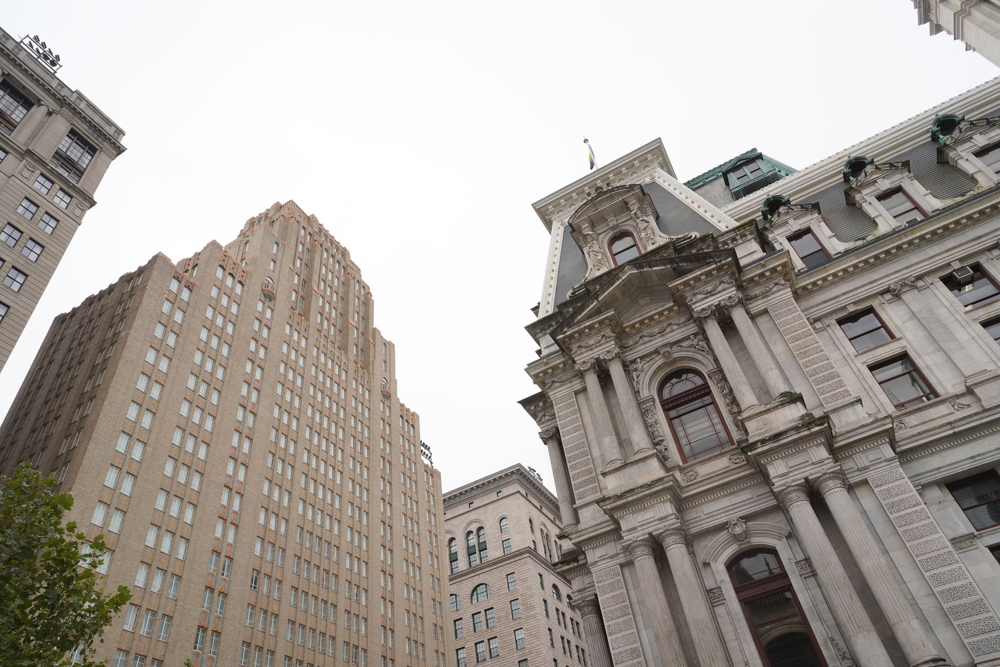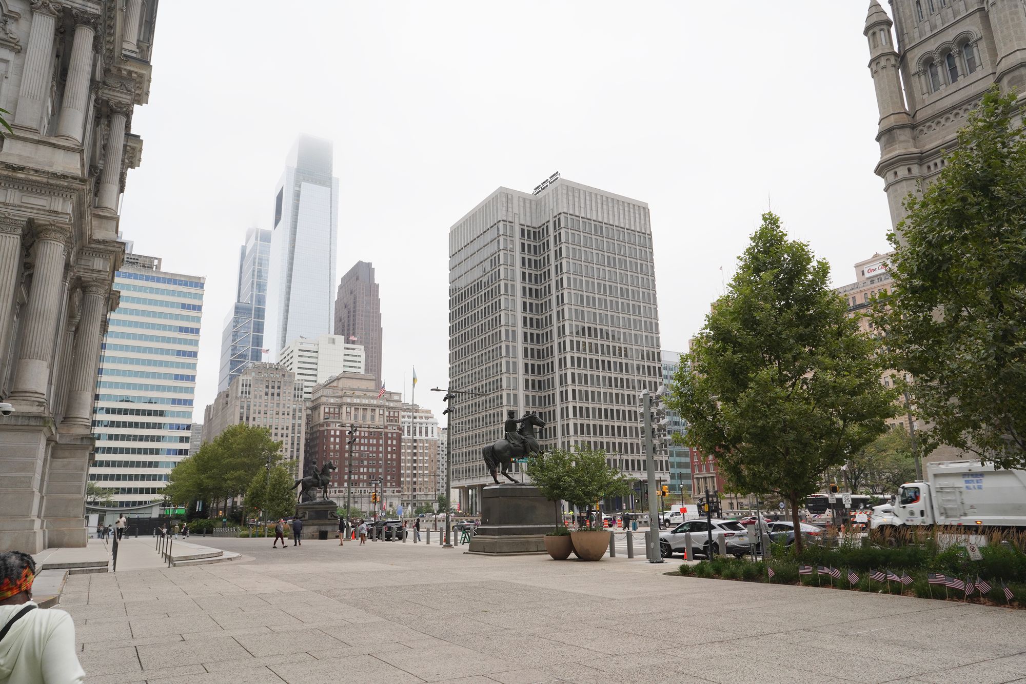 The tall building in the center of the picture below is the Philadelphia City Hall.  It is one of the largest and most striking municipal buildings in the United States.