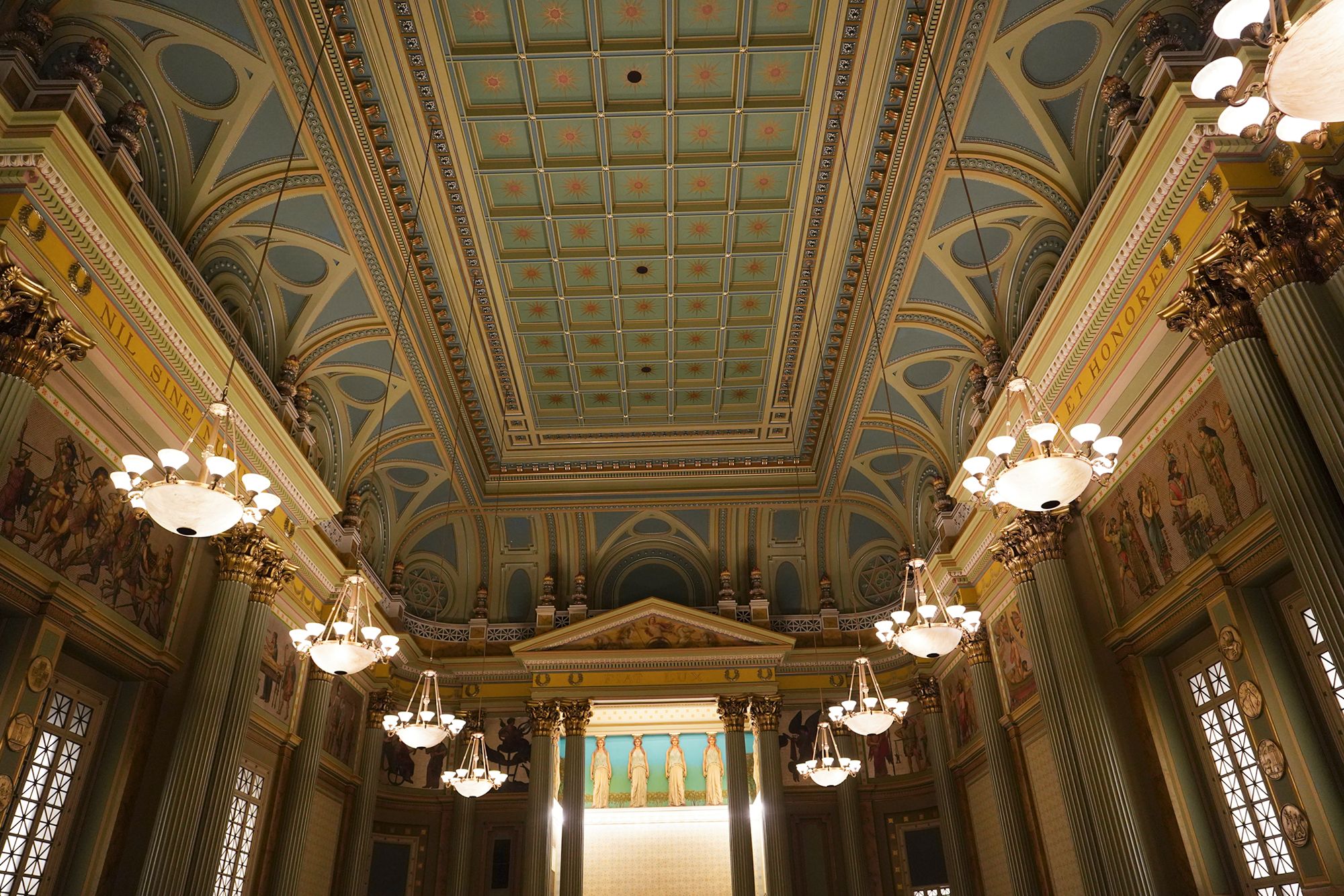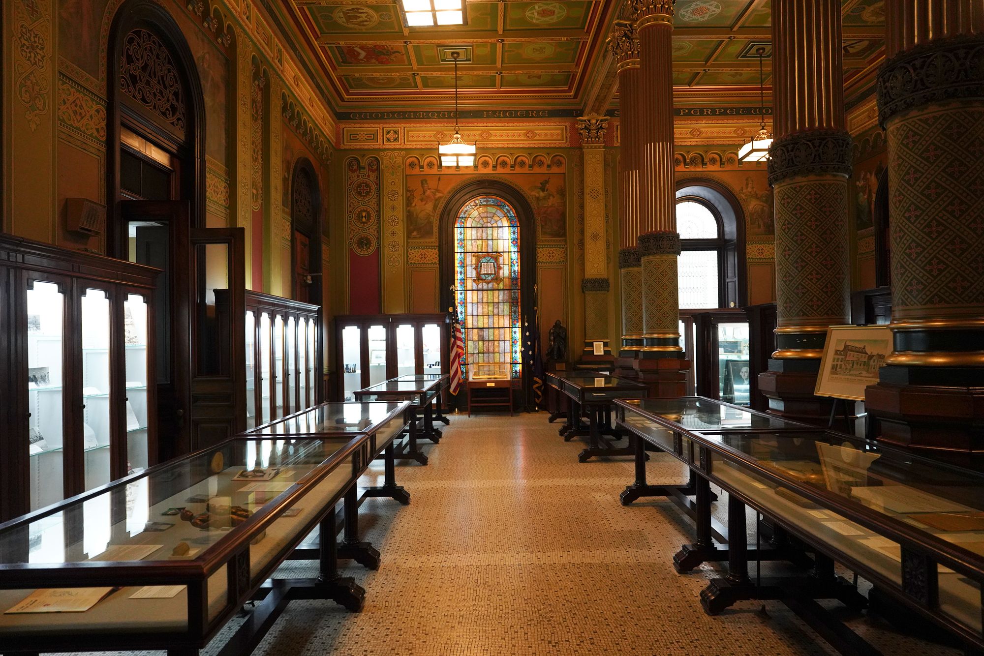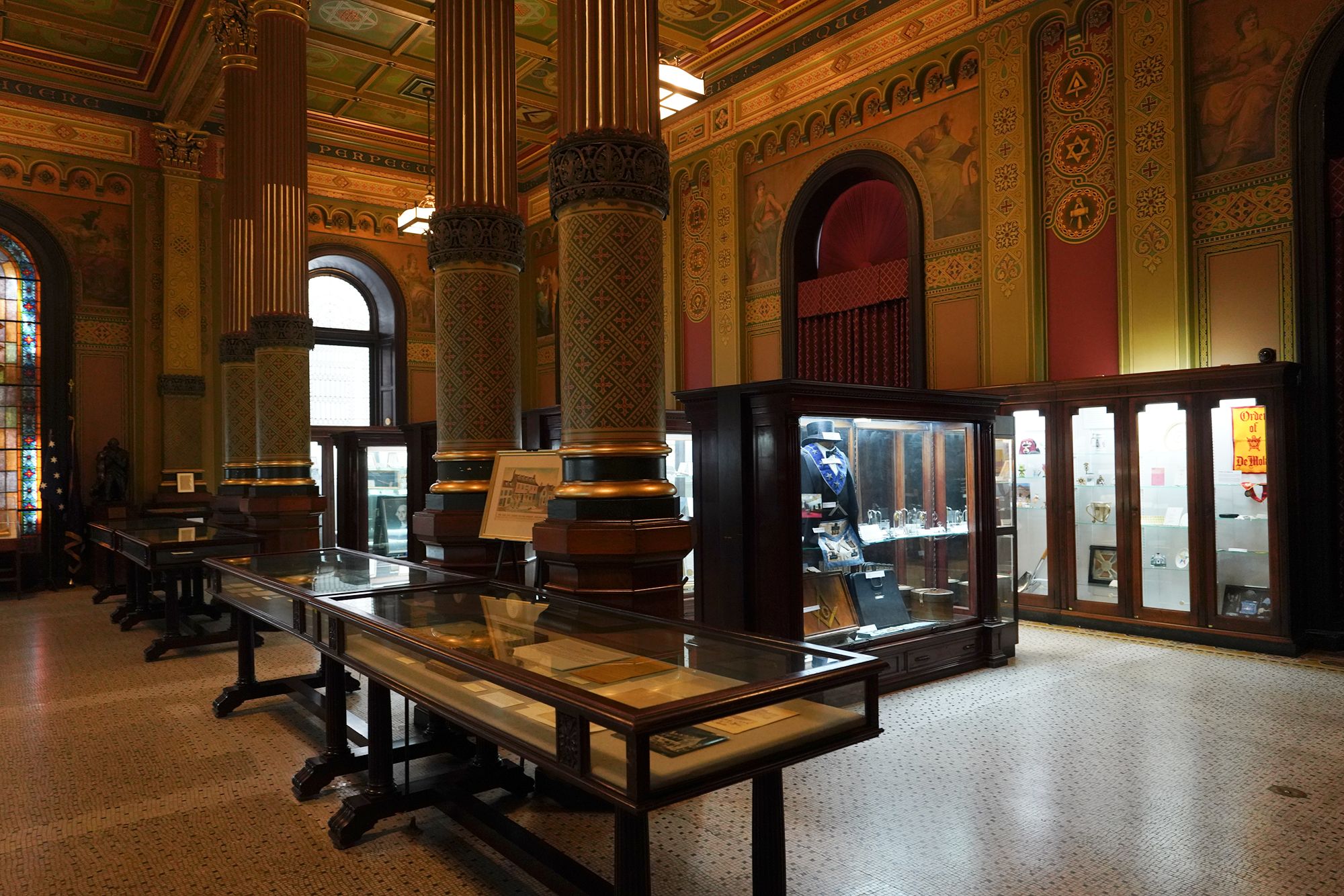 These halls are used for Masonic meetings and ceremonies, but they also function like museum spaces filled with murals, carvings, stained glass, and symbolic decoration. In addition to the halls, the building contains a museum and library holding Masonic artifacts, documents, and historical collections. The interior is elaborate, colorful, and highly detailed, making it one of the most unique interiors in Philadelphia.