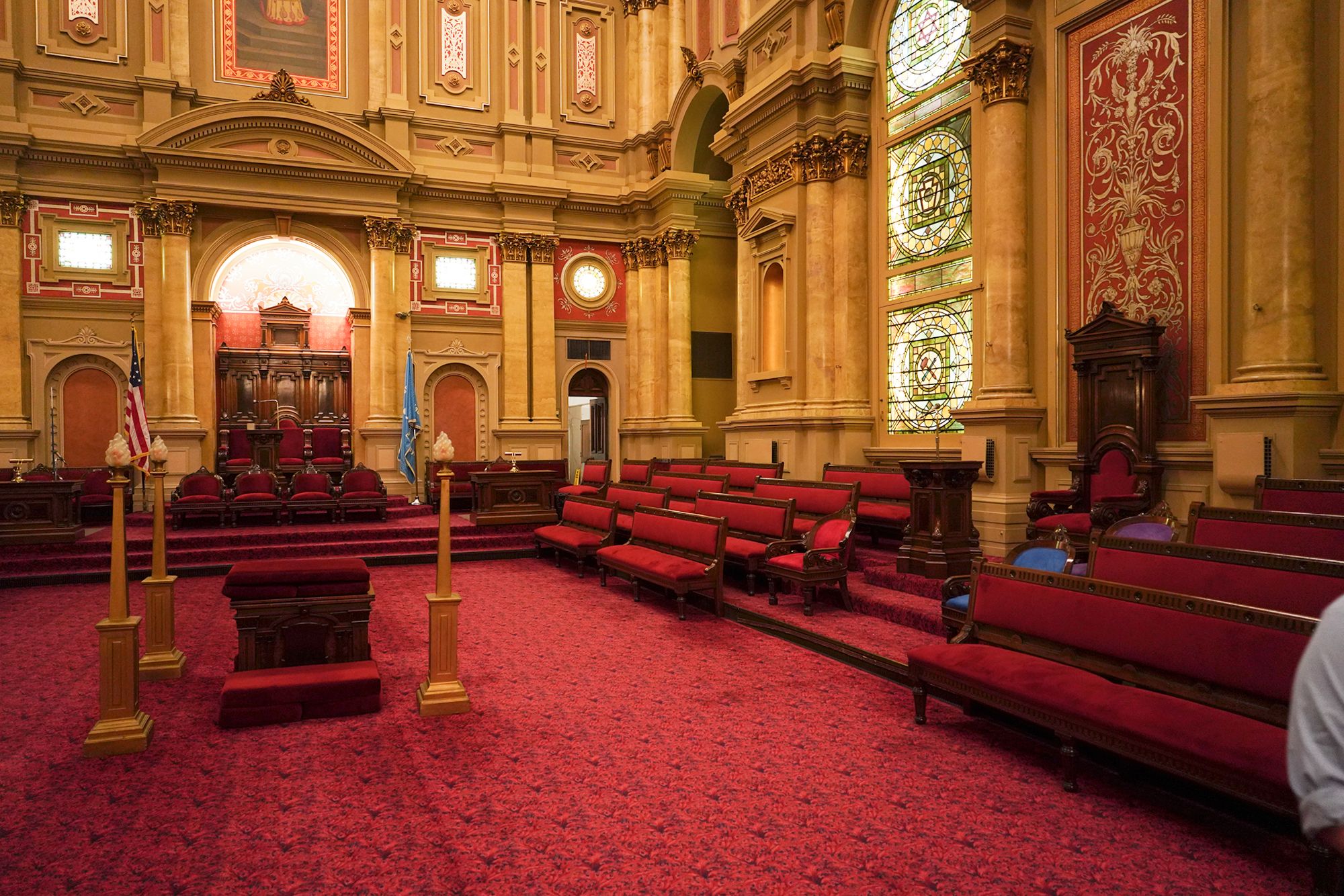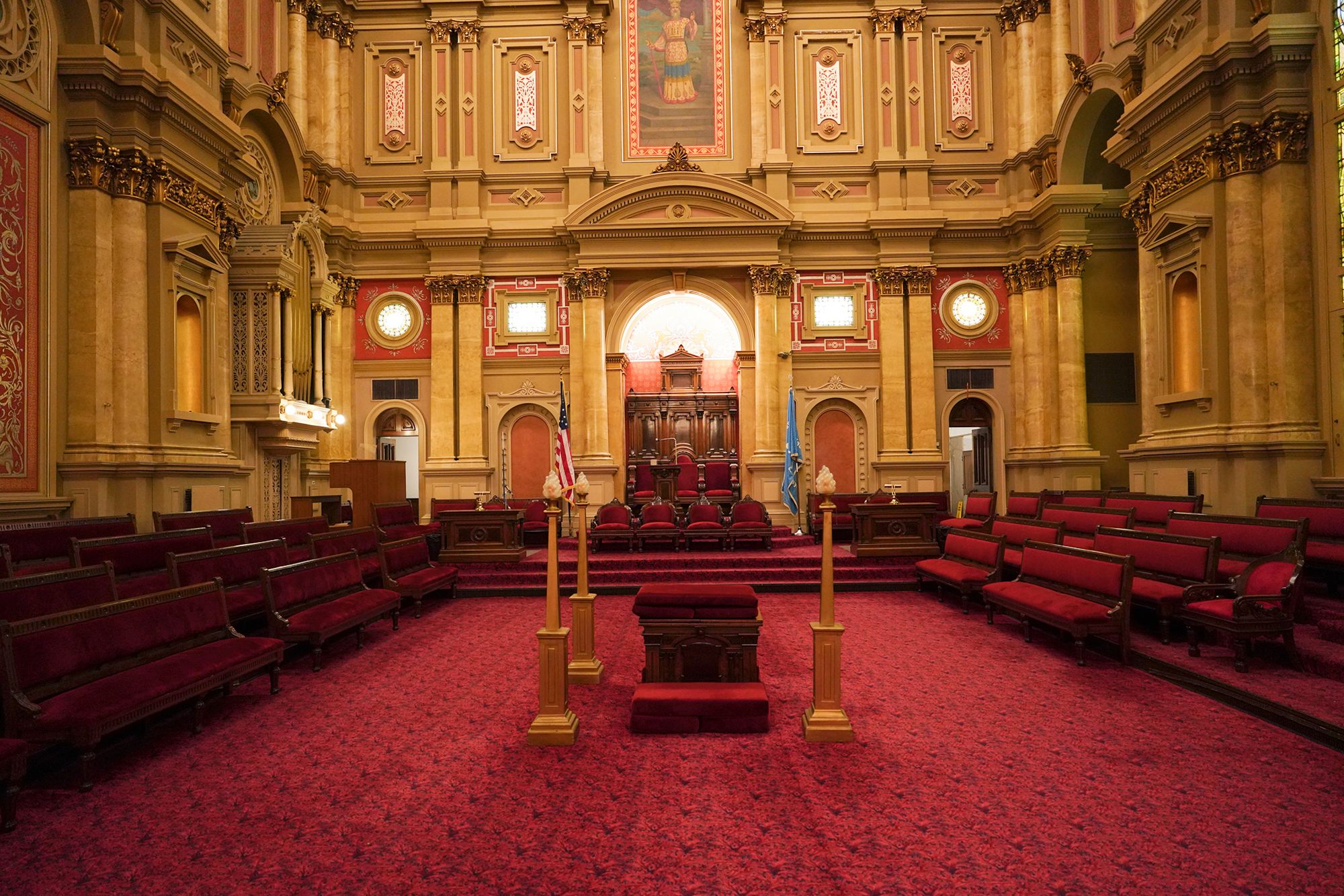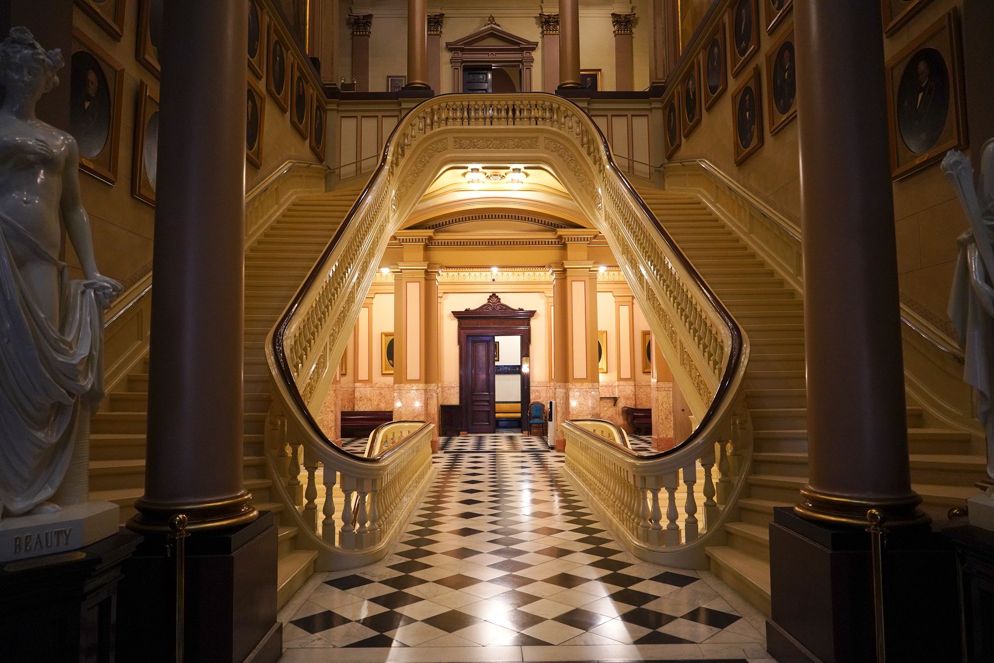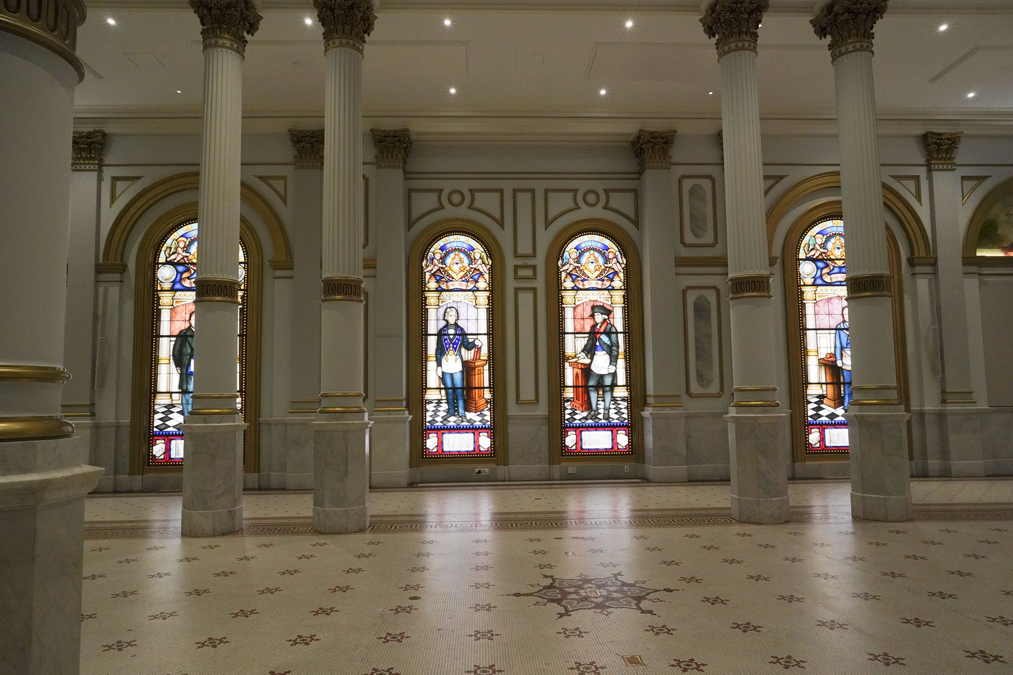 These halls are used for Masonic meetings and ceremonies, but they also function like museum spaces filled with murals, carvings, stained glass, and symbolic decoration. In addition to the halls, the building contains a museum and library holding Masonic artifacts, documents, and historical collections. The interior is elaborate, colorful, and highly detailed, making it one of the most unique interiors in Philadelphia.