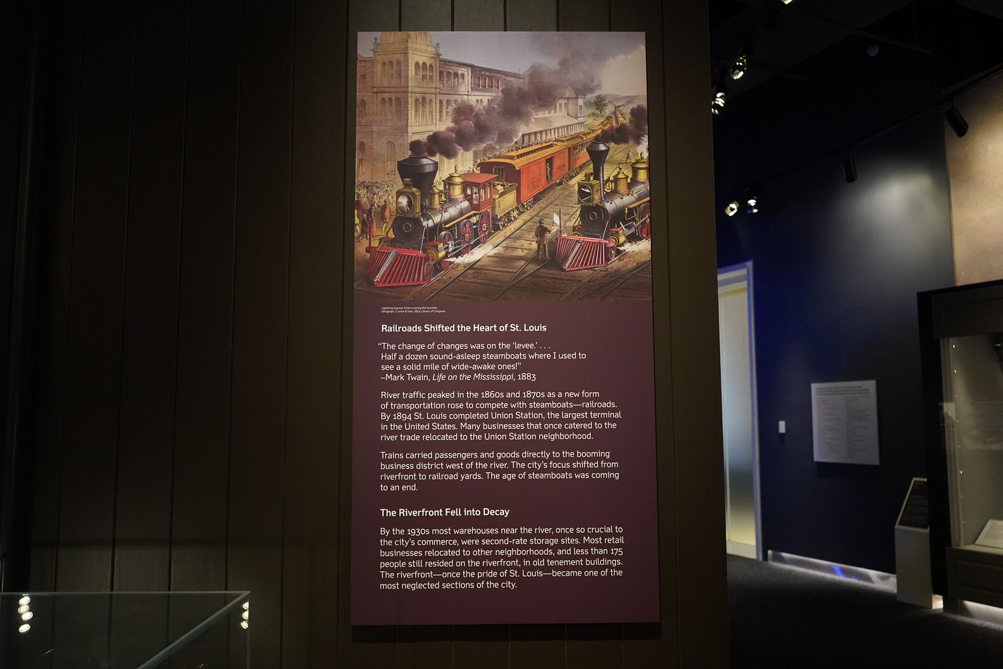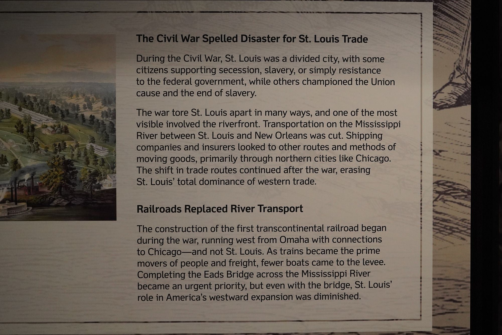 The riverfront era refers to the period when St. Louis thrived as a major Mississippi River port, with steamboats crowding its levees, warehouses and markets lining the shoreline, and river trade driving the city’s growth as a gateway for goods, immigrants, and westward expansion.