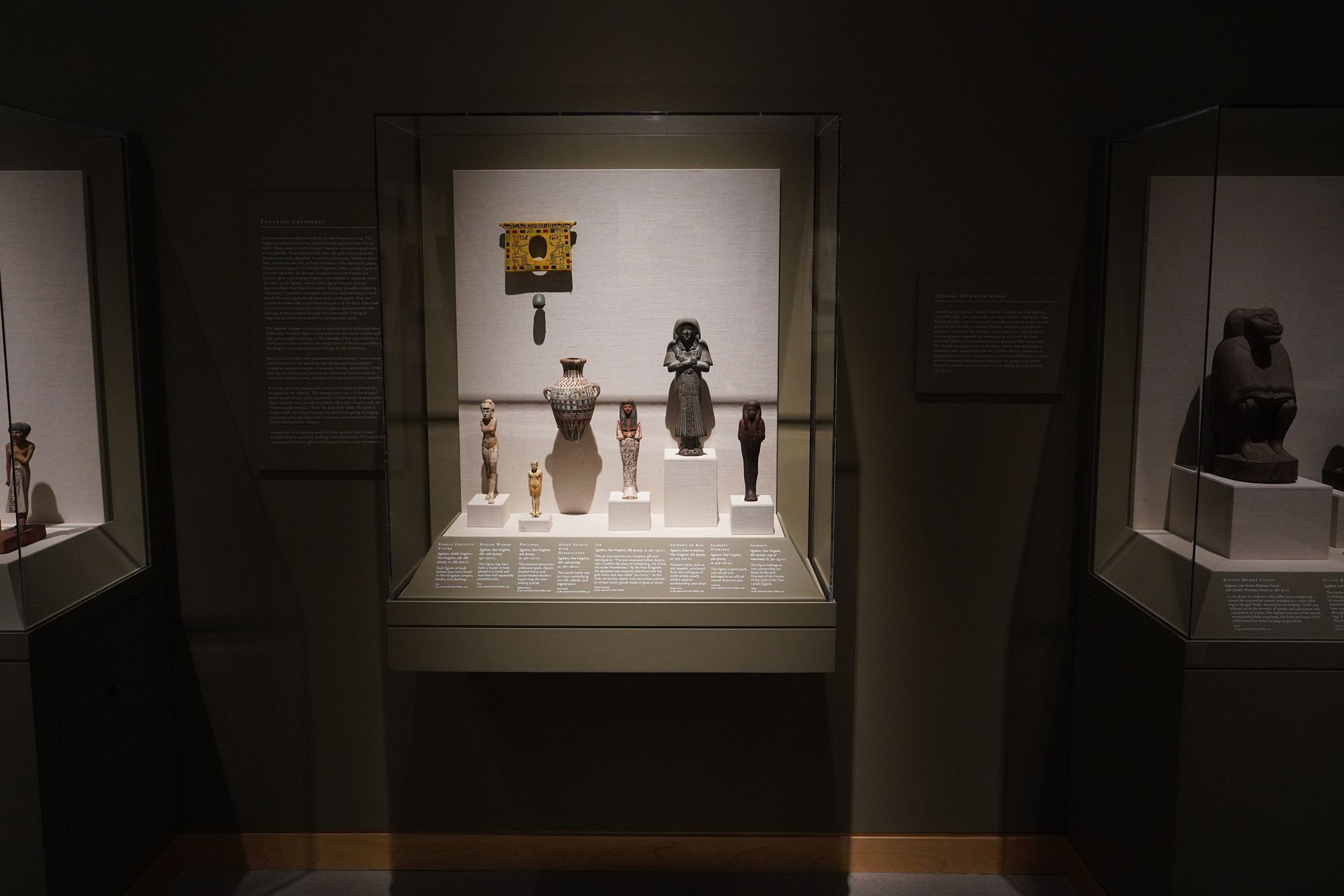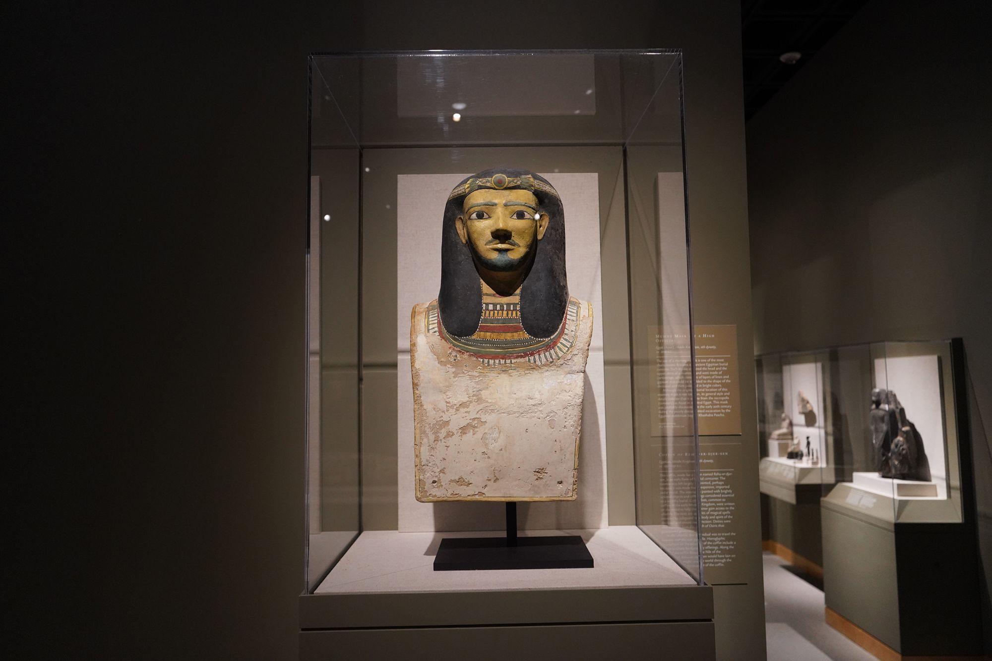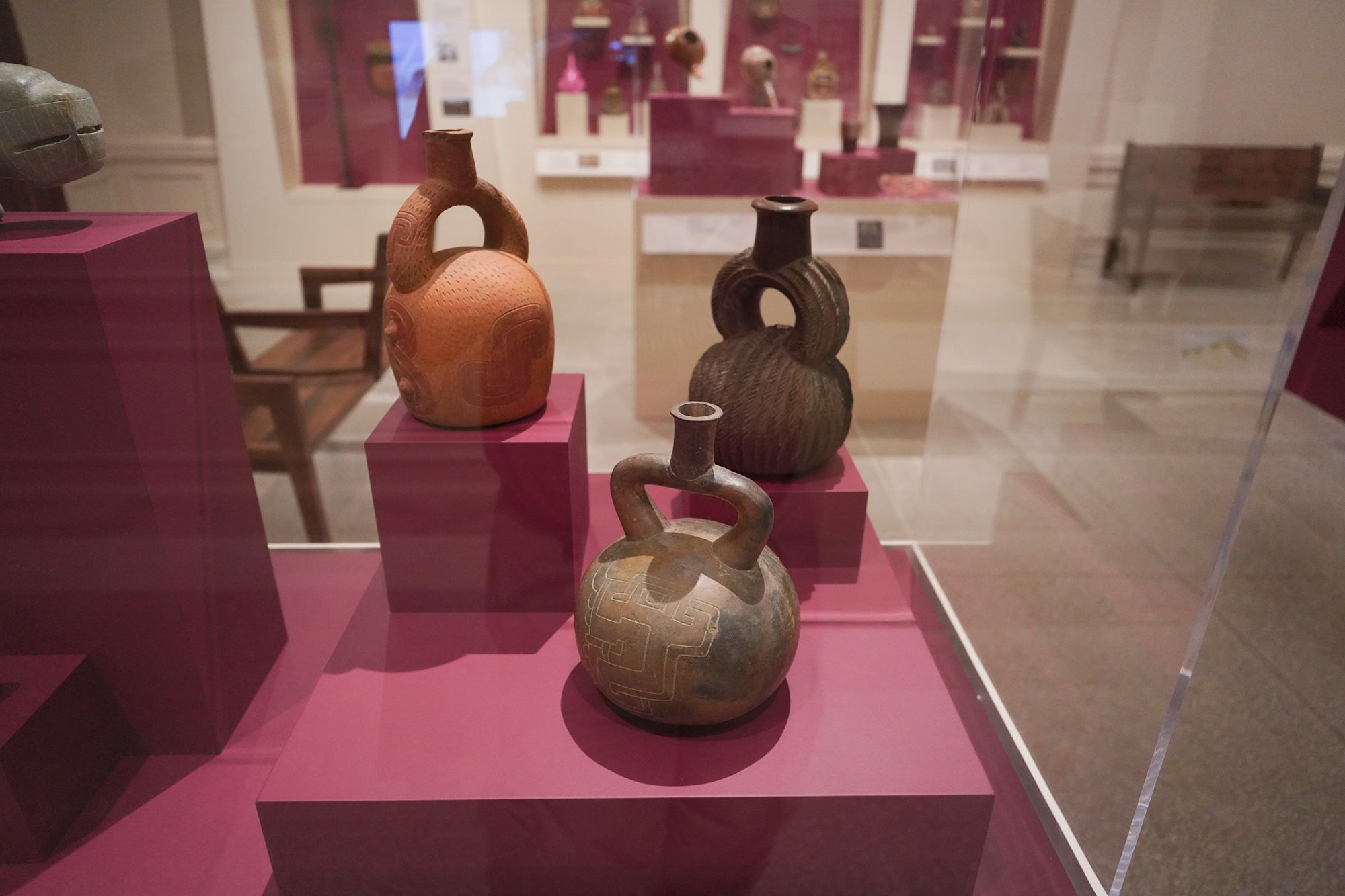 Its collection includes Egyptian sculpture, sarcophagi, jewelry, and funerary objects alongside pottery, stone carvings, and ceremonial pieces from South and Central American civilizations, offering a view of ancient artistry across continents.