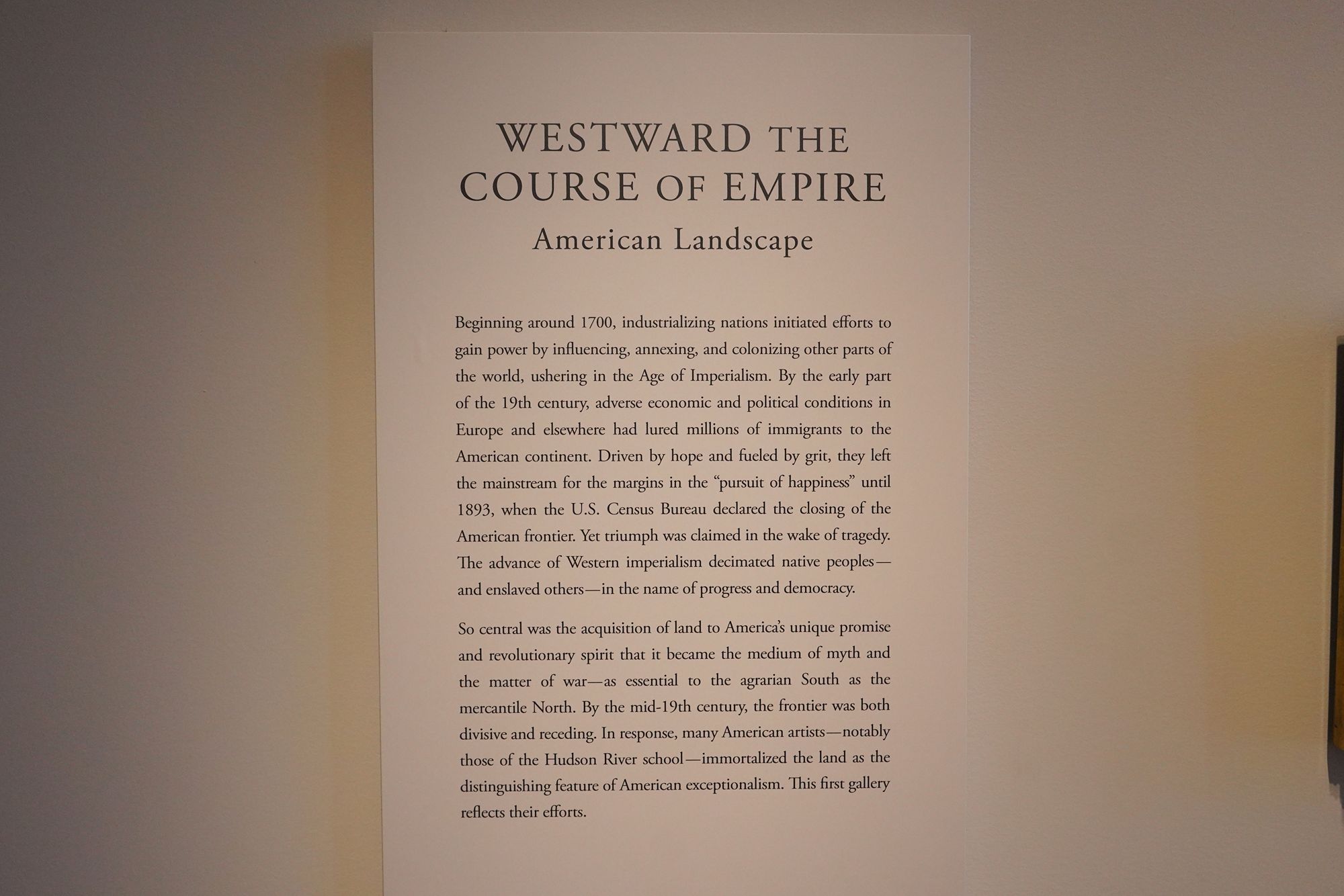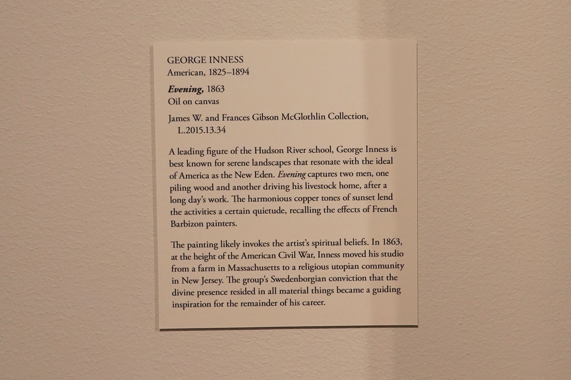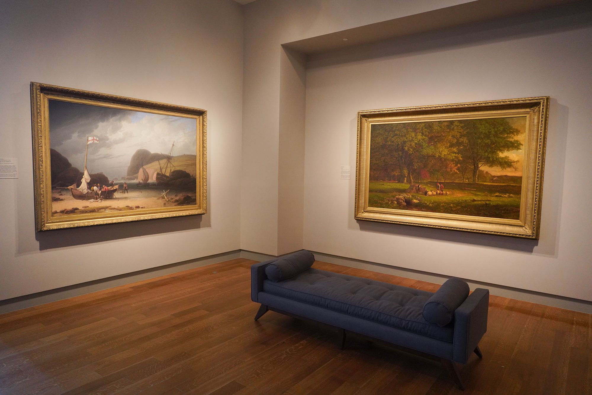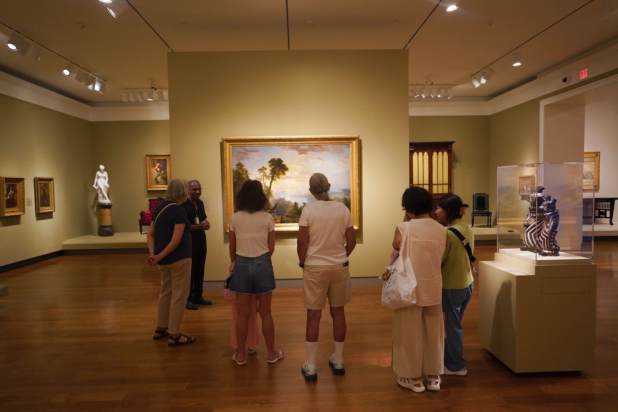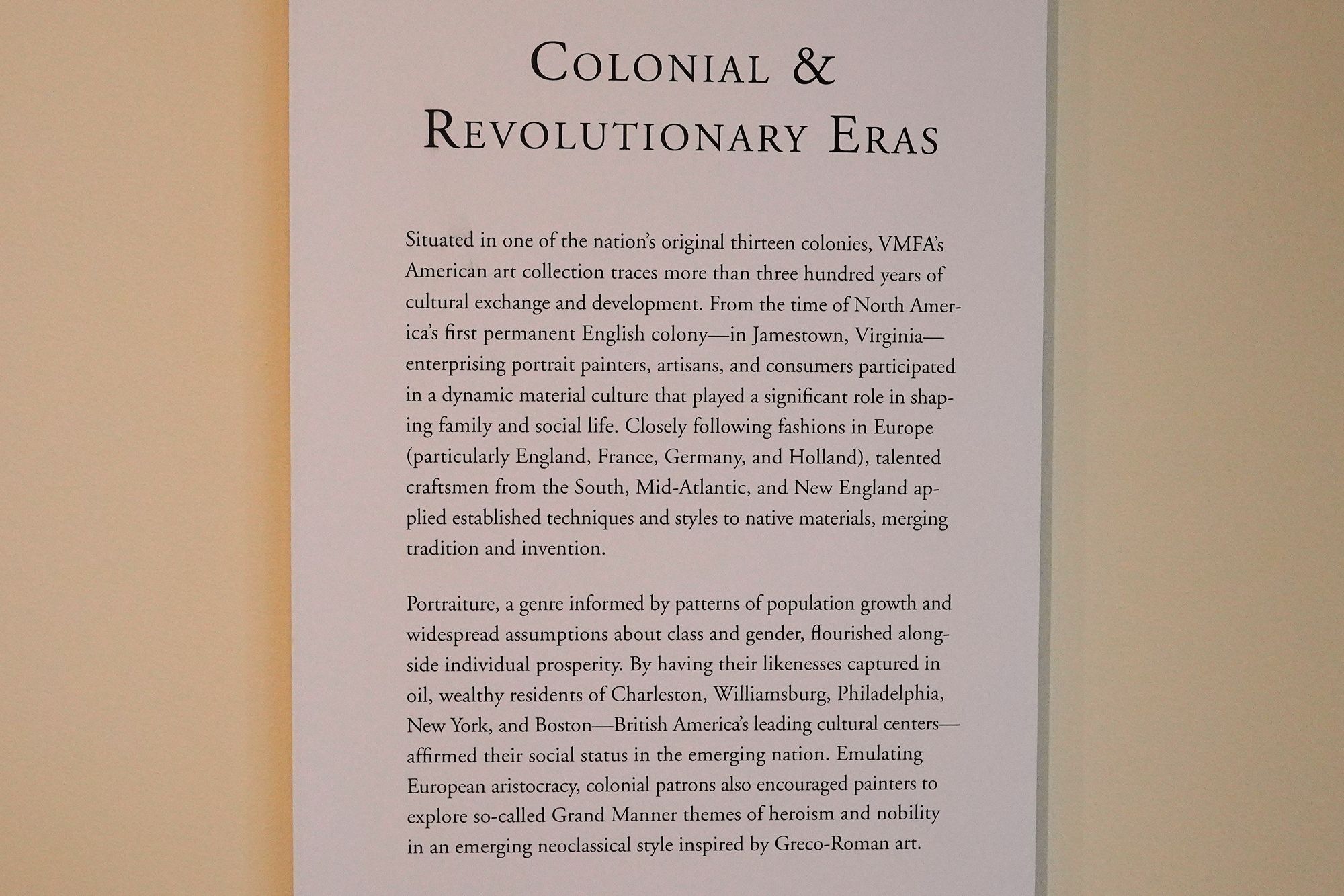 The American paintings at the Virginia Museum of Fine Arts span from the Colonial period to the 20th century, tracing the nation’s artistic and cultural evolution. Early works include portraits and landscapes from the Colonial and Revolutionary eras, while 19th-century paintings feature Hudson River School landscapes, Realist scenes, and westward expansion themes.