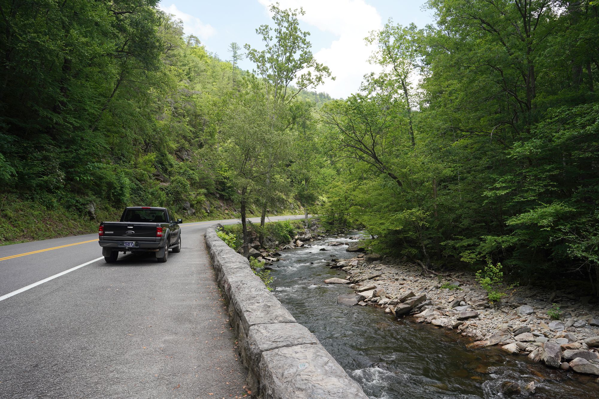 There are pullouts and short trails where you can stop for photos or explore historic buildings up close. It’s one of the most popular and picturesque areas of Great Smoky Mountains National Park.