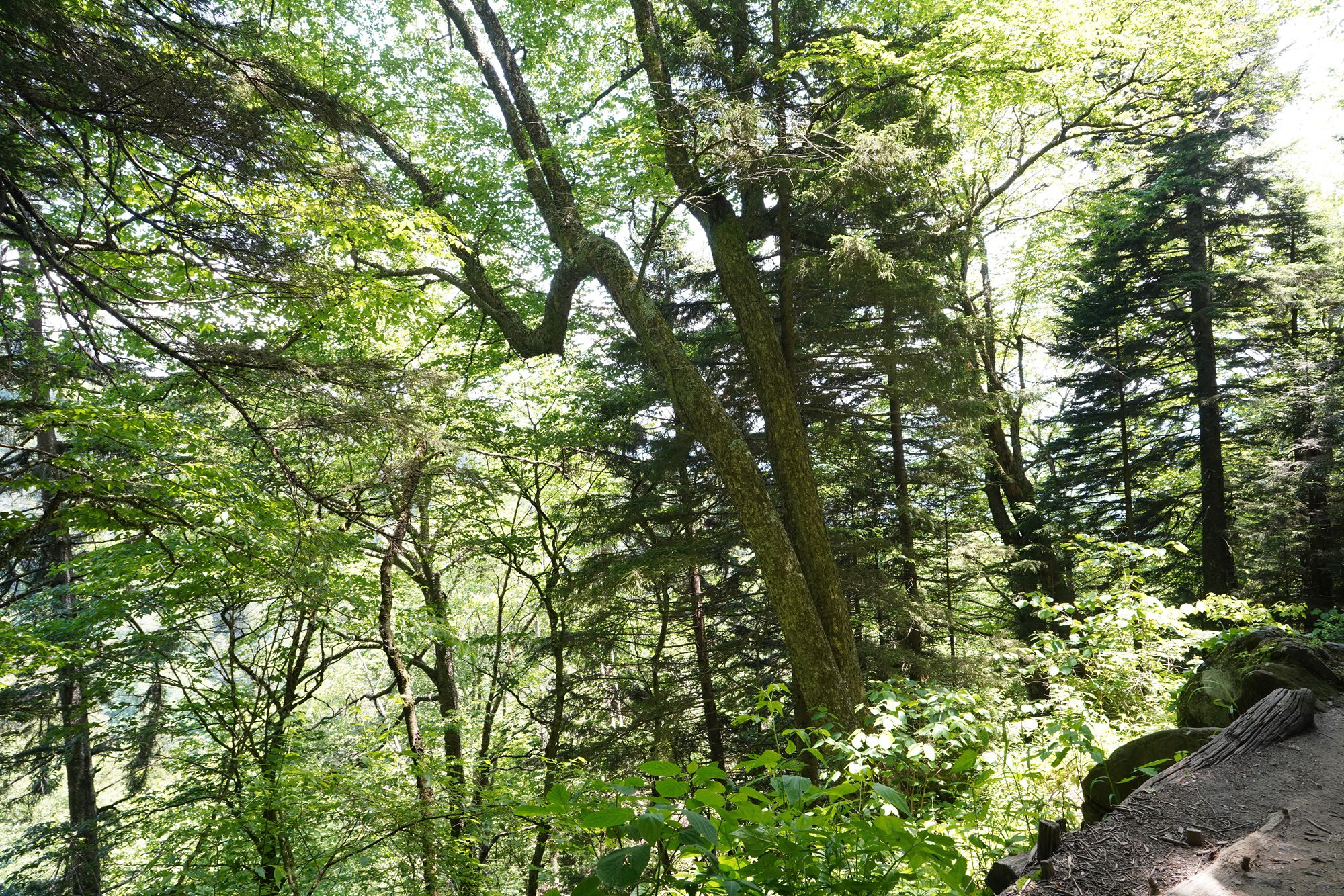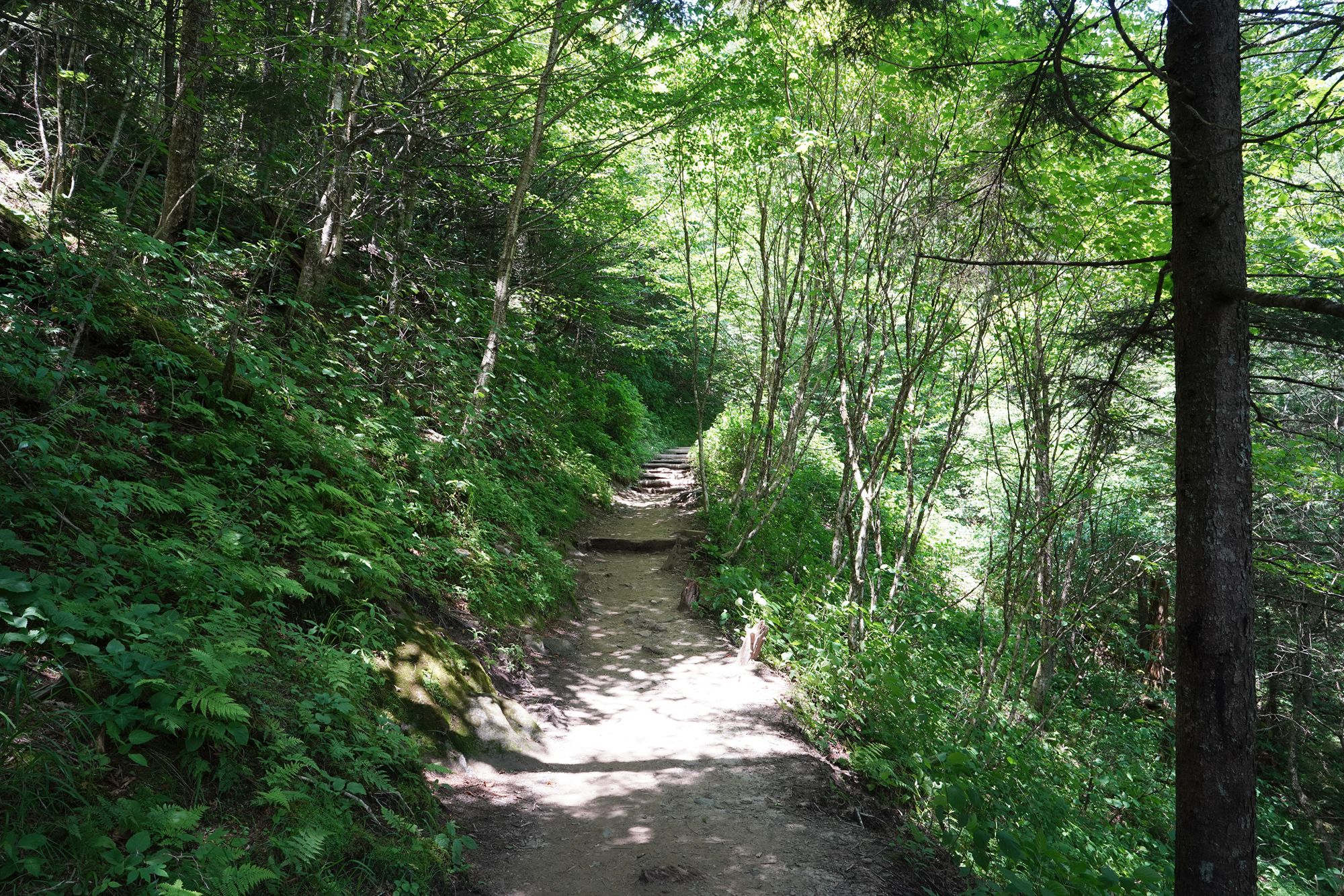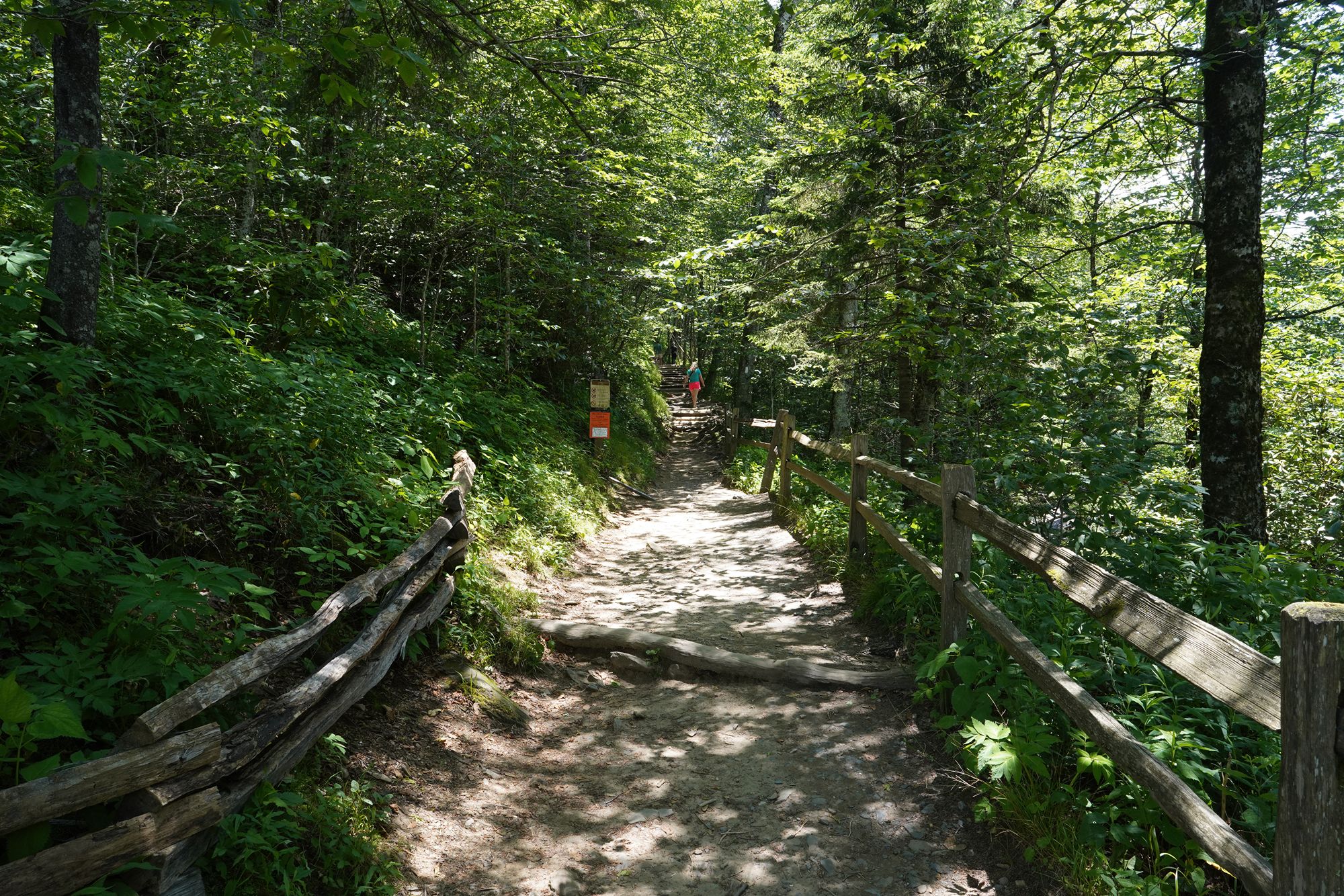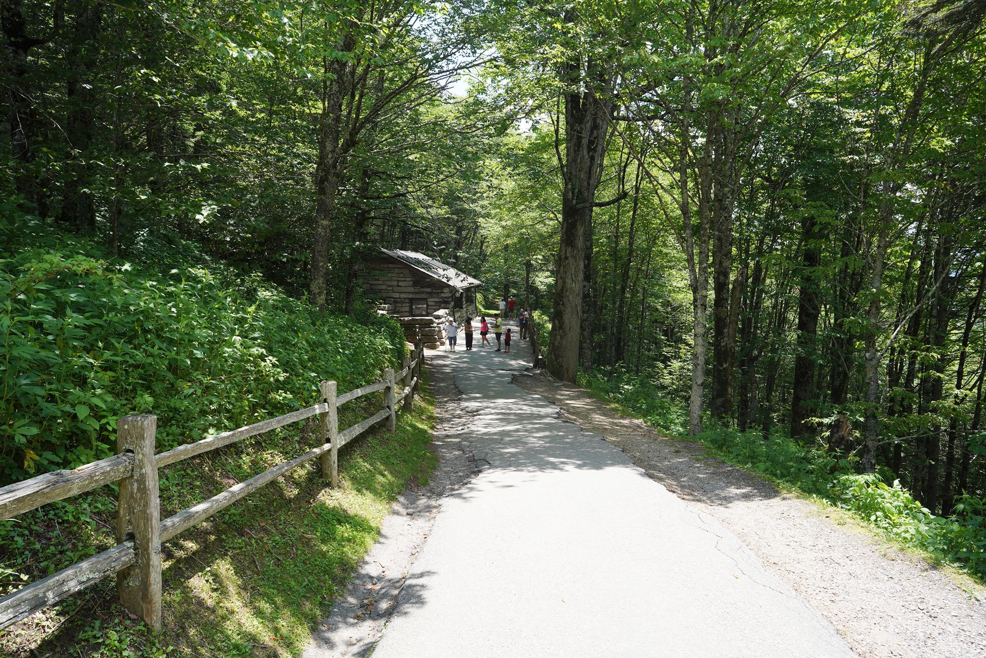 As shown in the panel below, the trees explode with a wide range of colors during the fall season. Since this visit took place in June, every tree was green, making the scenery less dramatic by comparison.