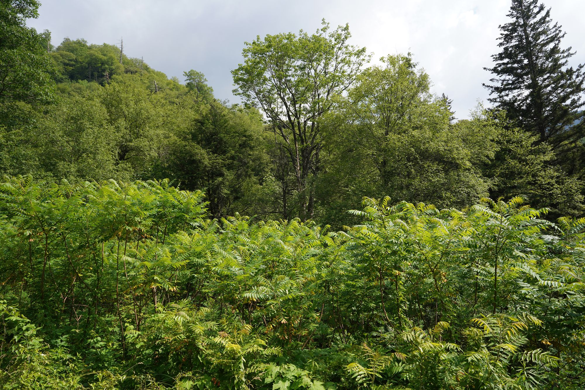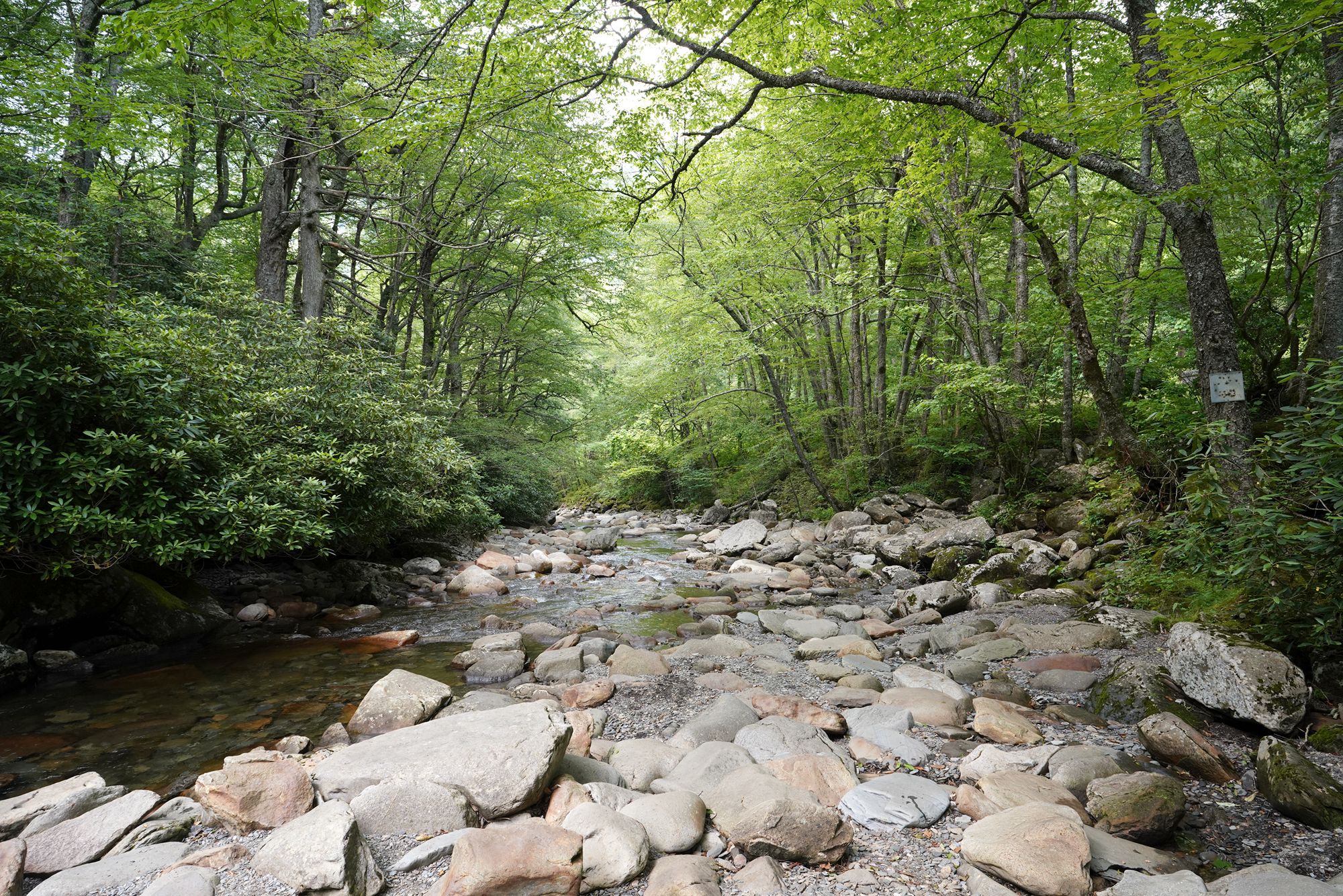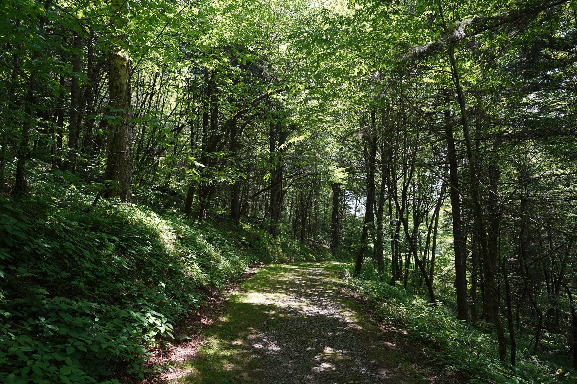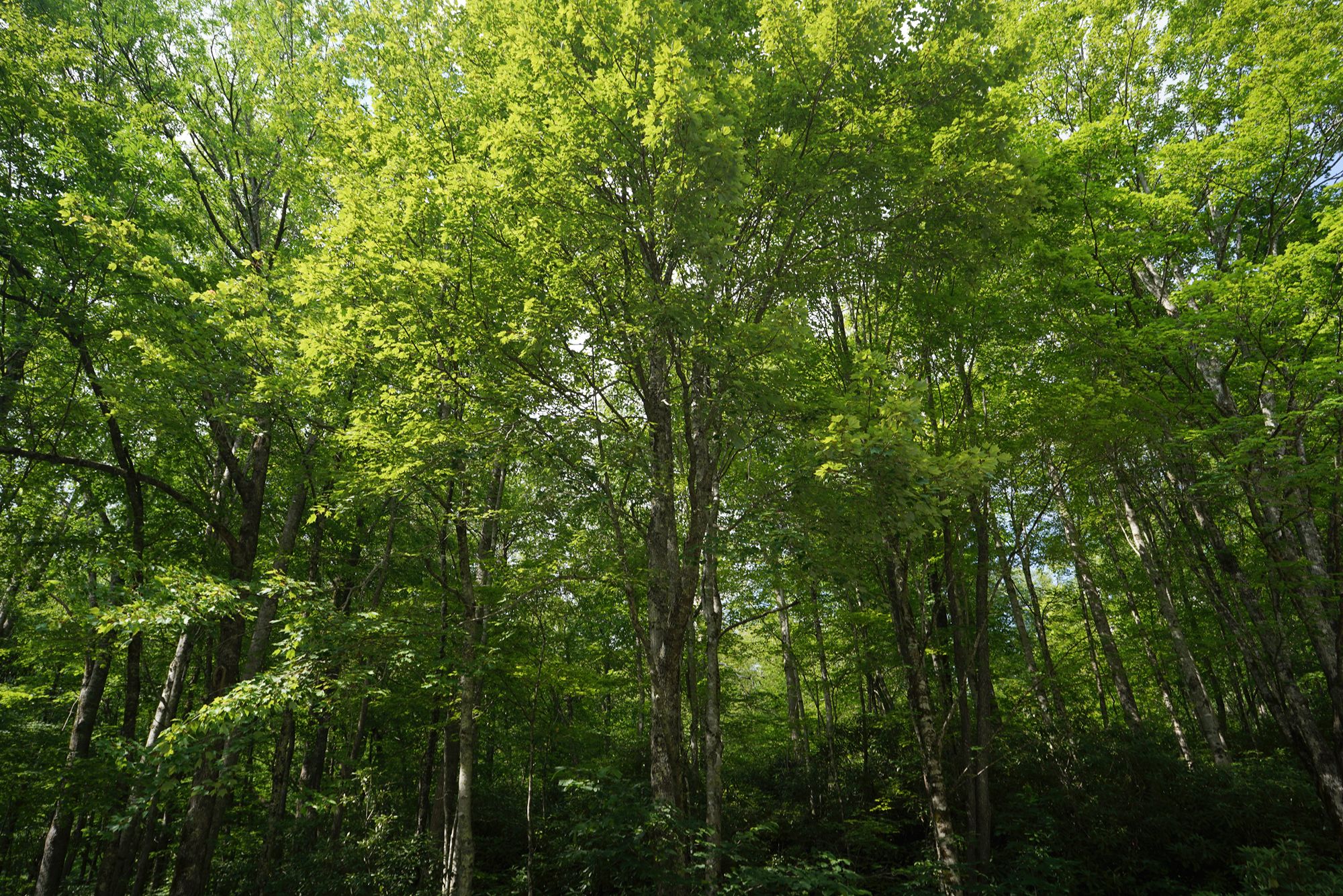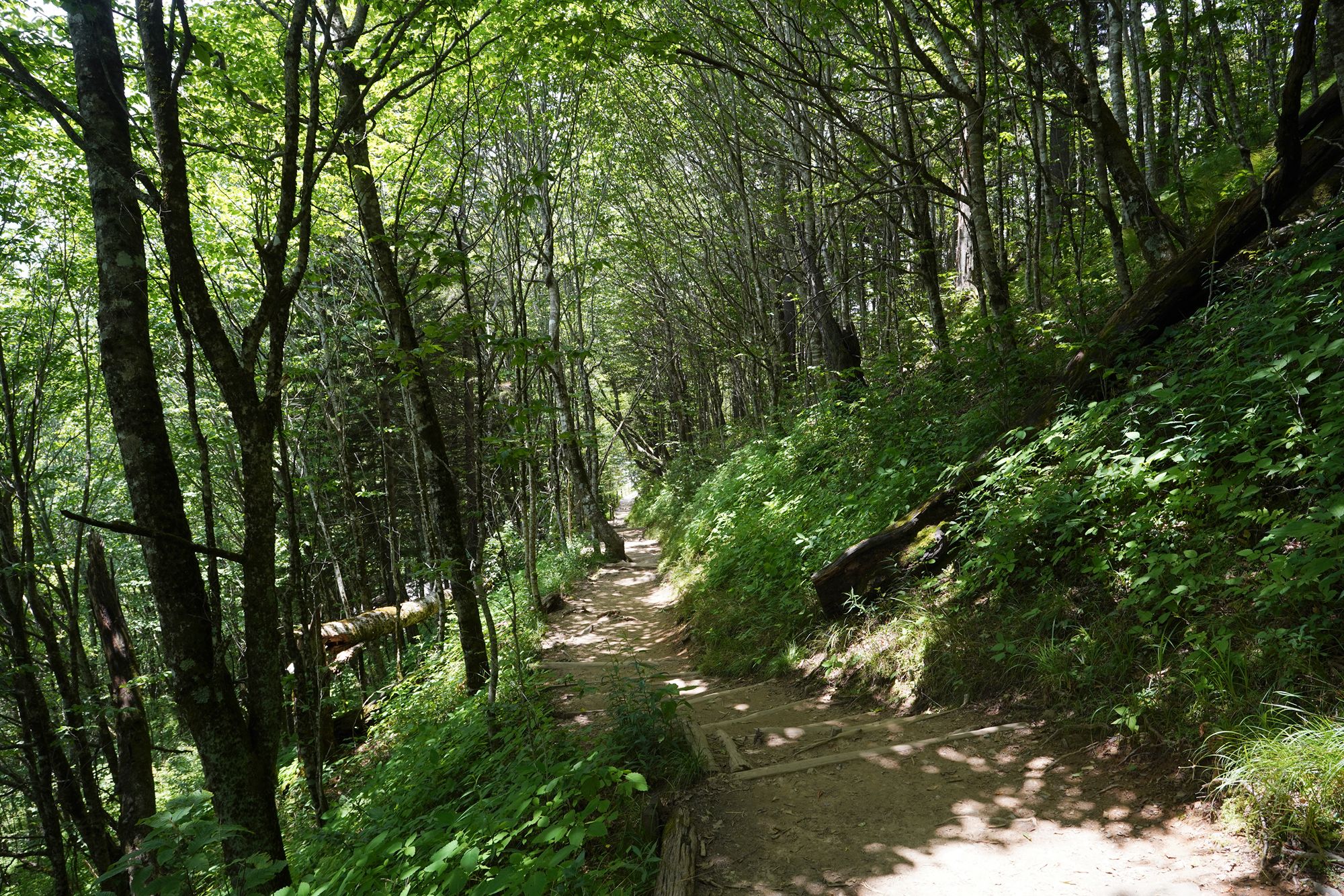As shown in the panel below, the trees explode with a wide range of colors during the fall season. Since this visit took place in June, every tree was green, making the scenery less dramatic by comparison.