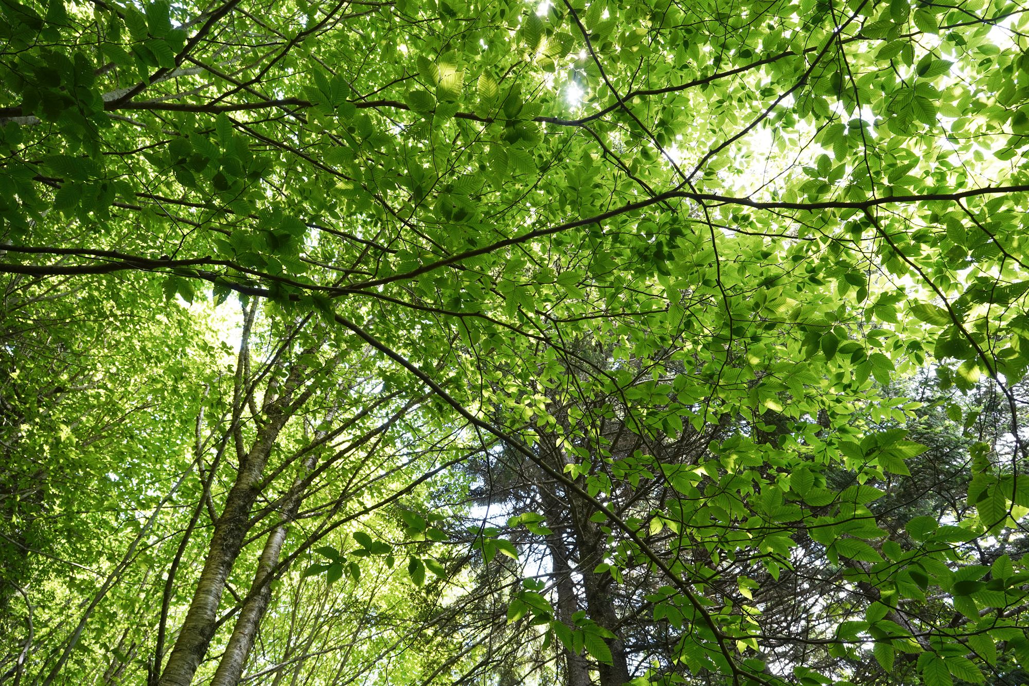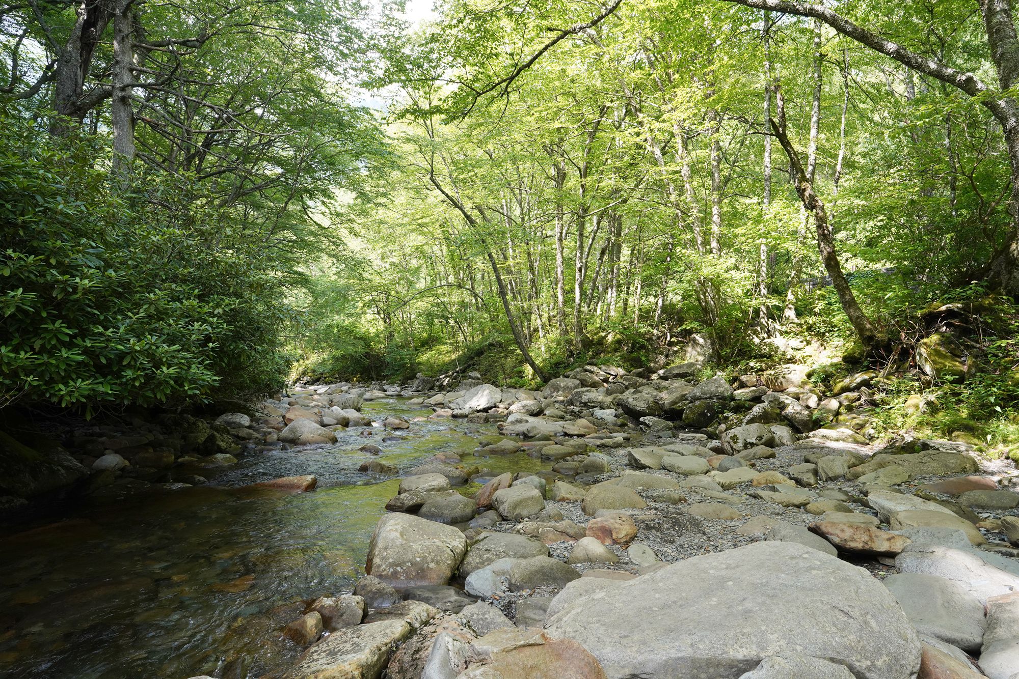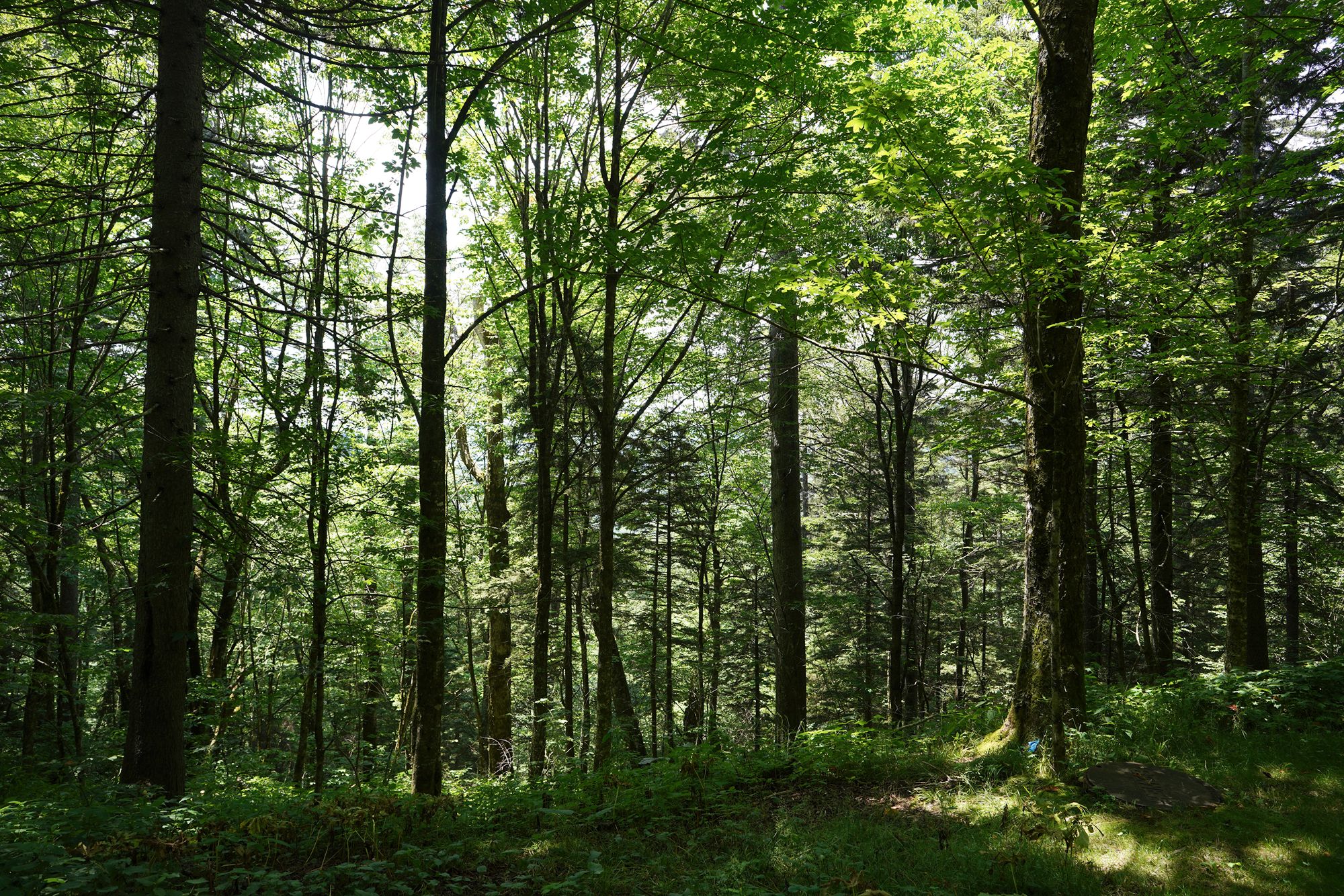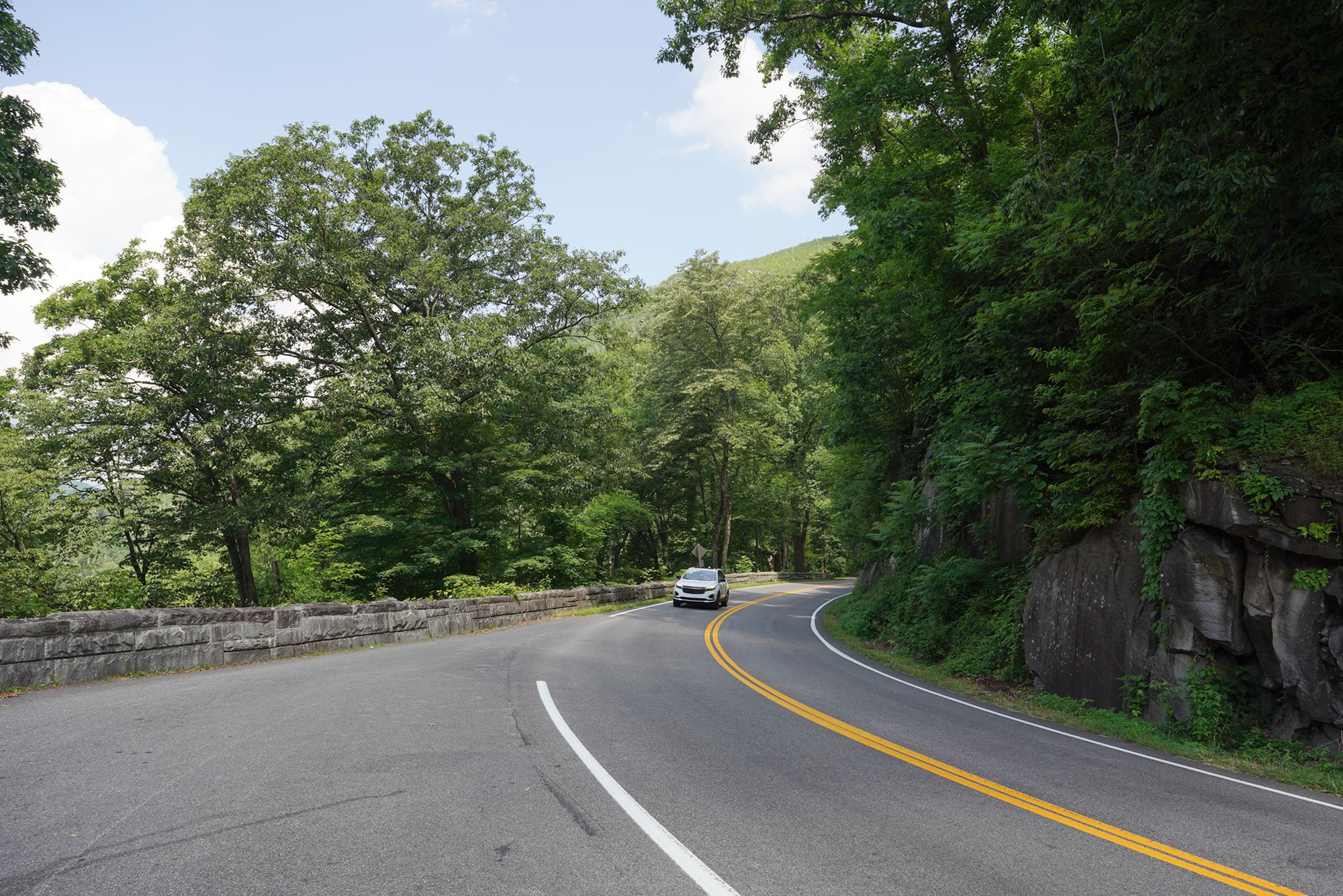 As shown in the panel below, the trees explode with a wide range of colors during the fall season. Since this visit took place in June, every tree was green, making the scenery less dramatic by comparison.