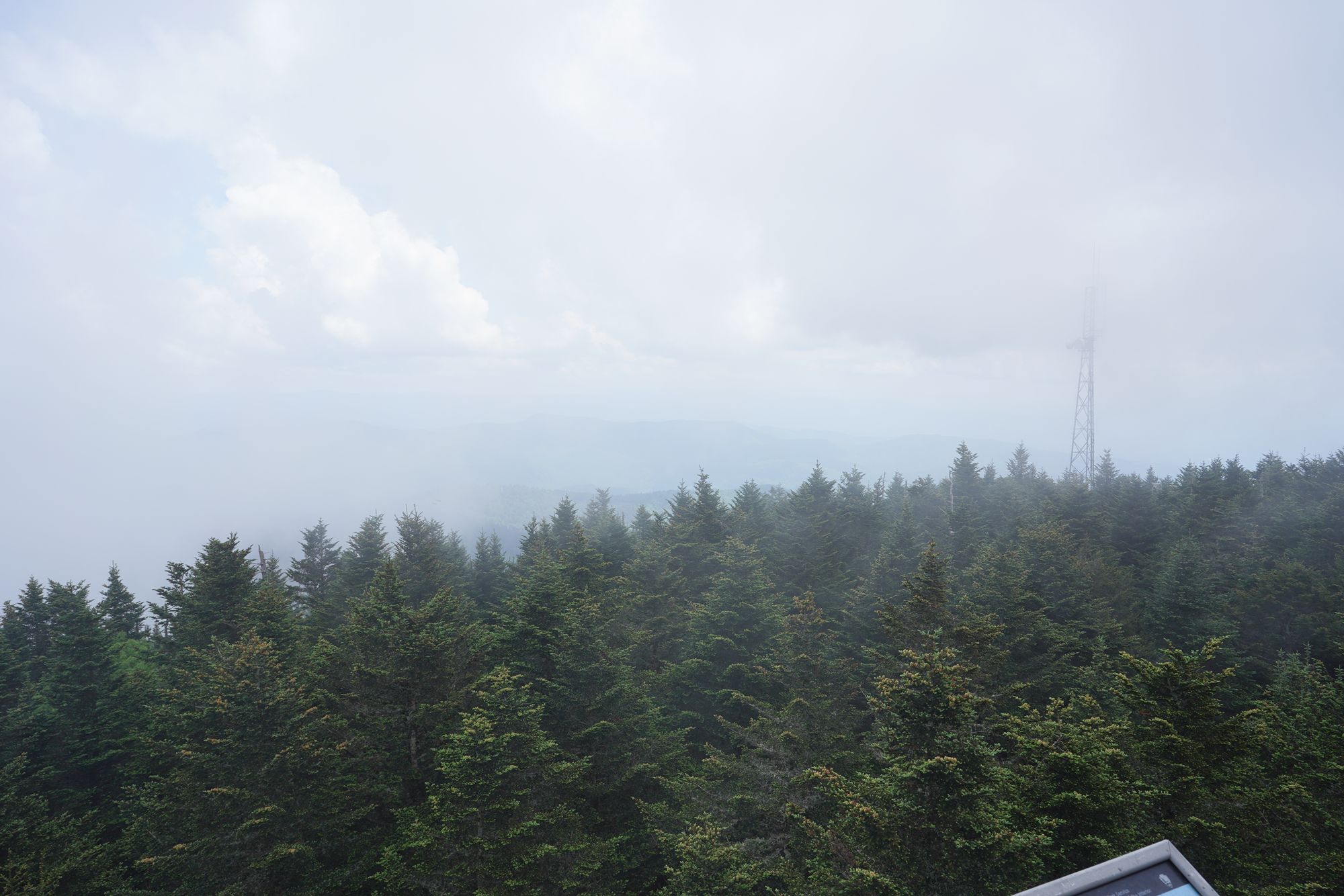 On clear days, you can see across multiple states, with ridgelines fading into layers of blue. — Unfortunately, not today