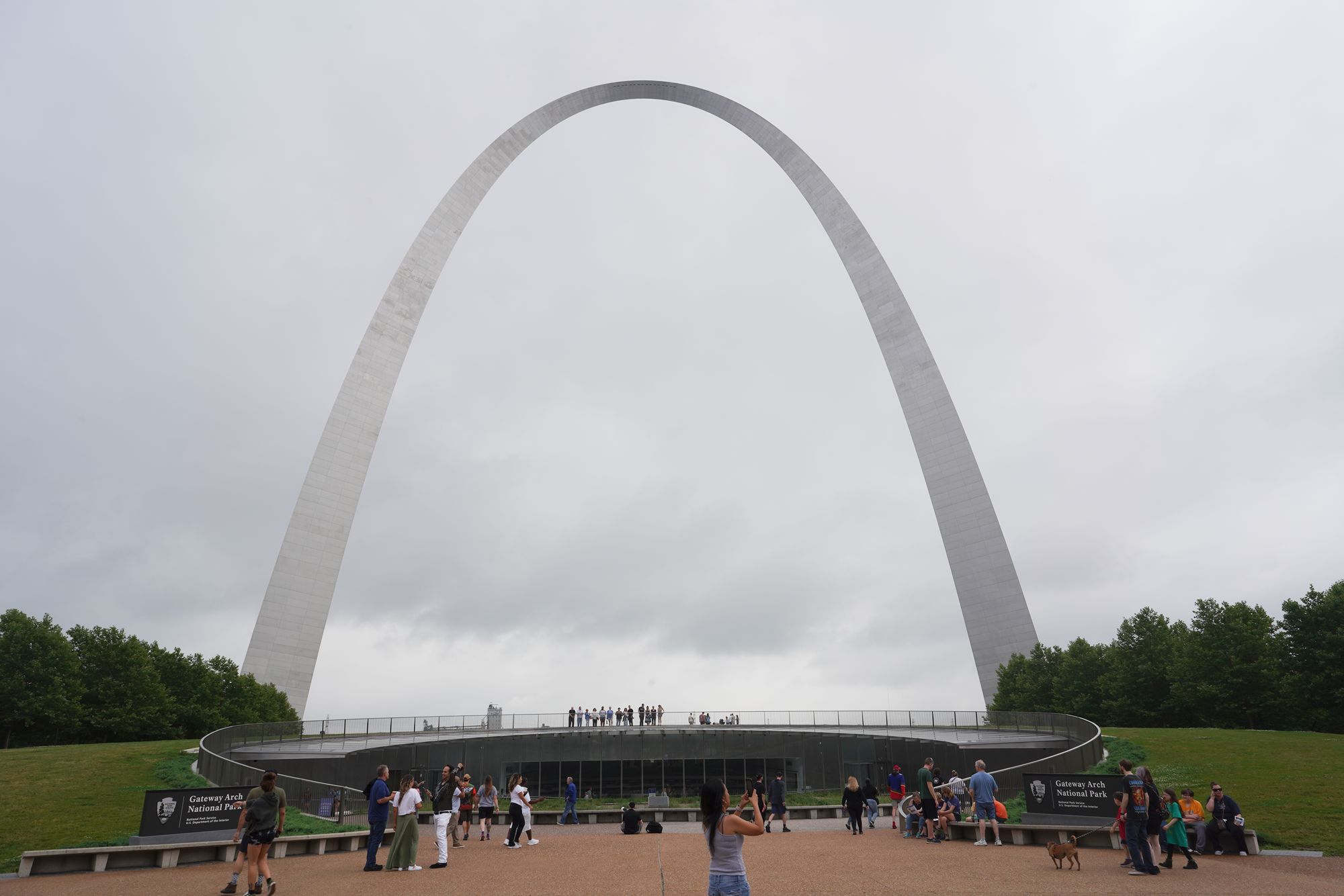 The building in front of the Arch houses the Arch museum and the tram station for the tram to the top.