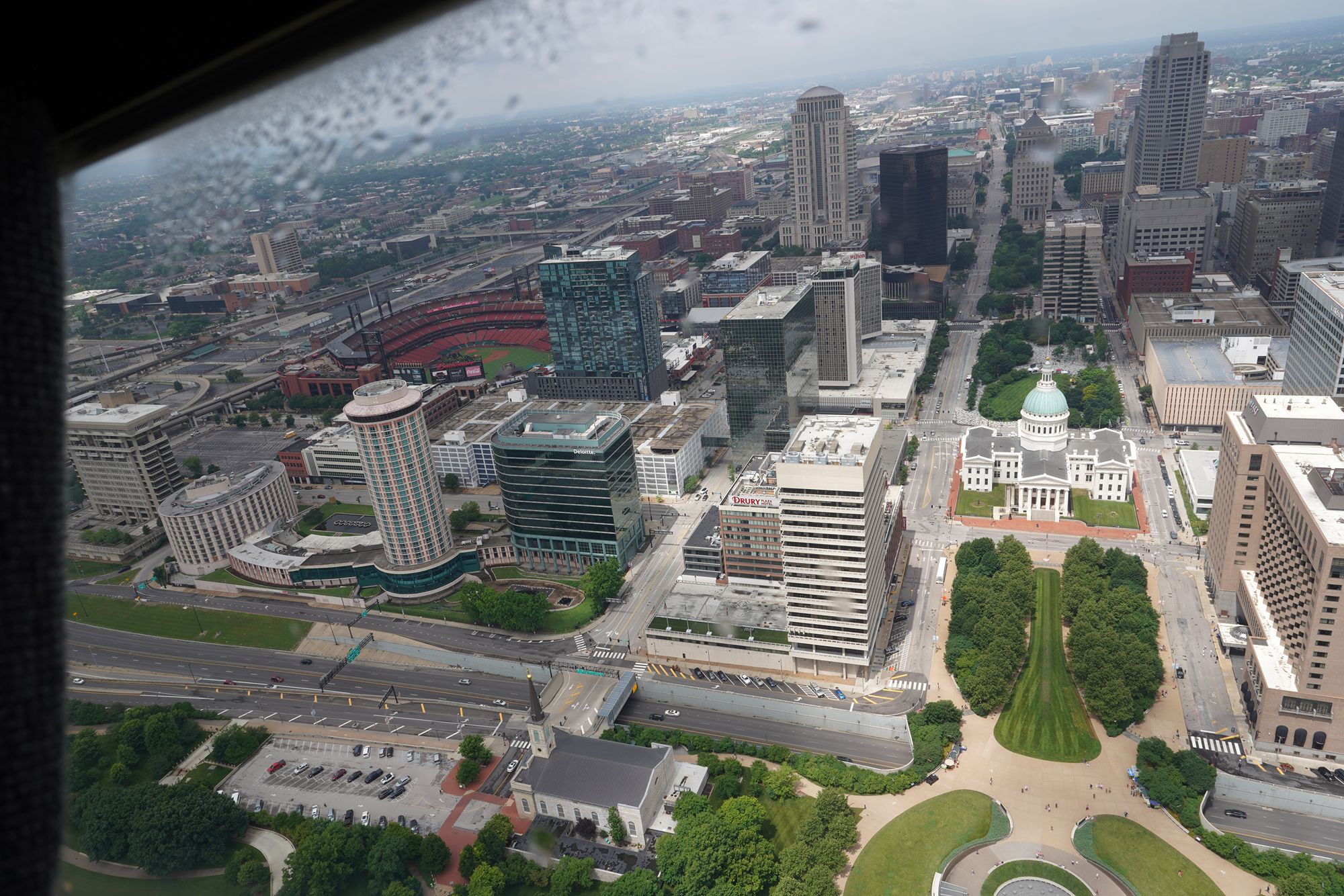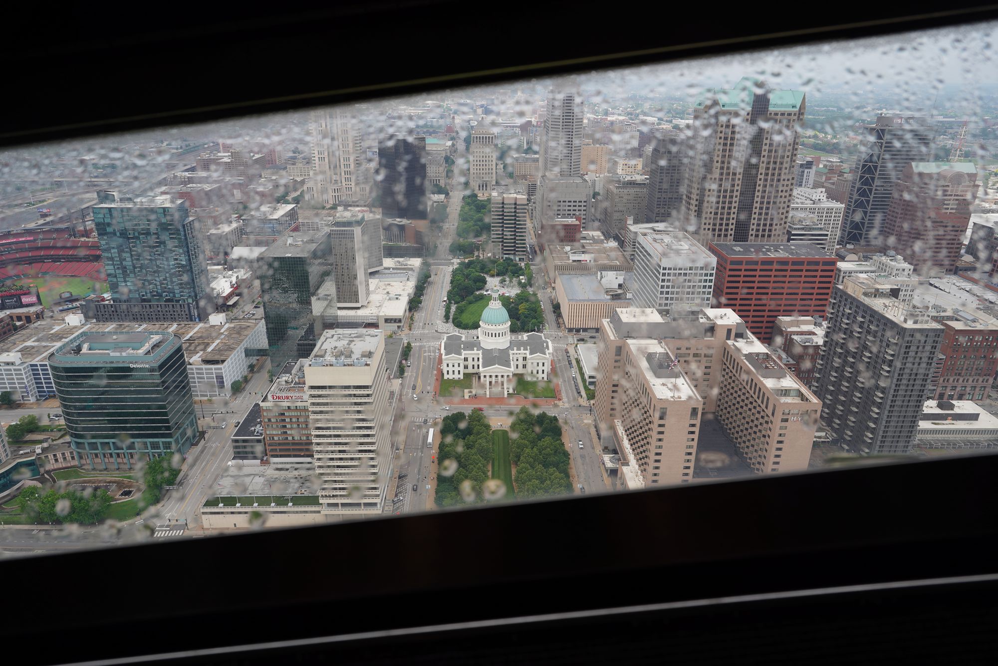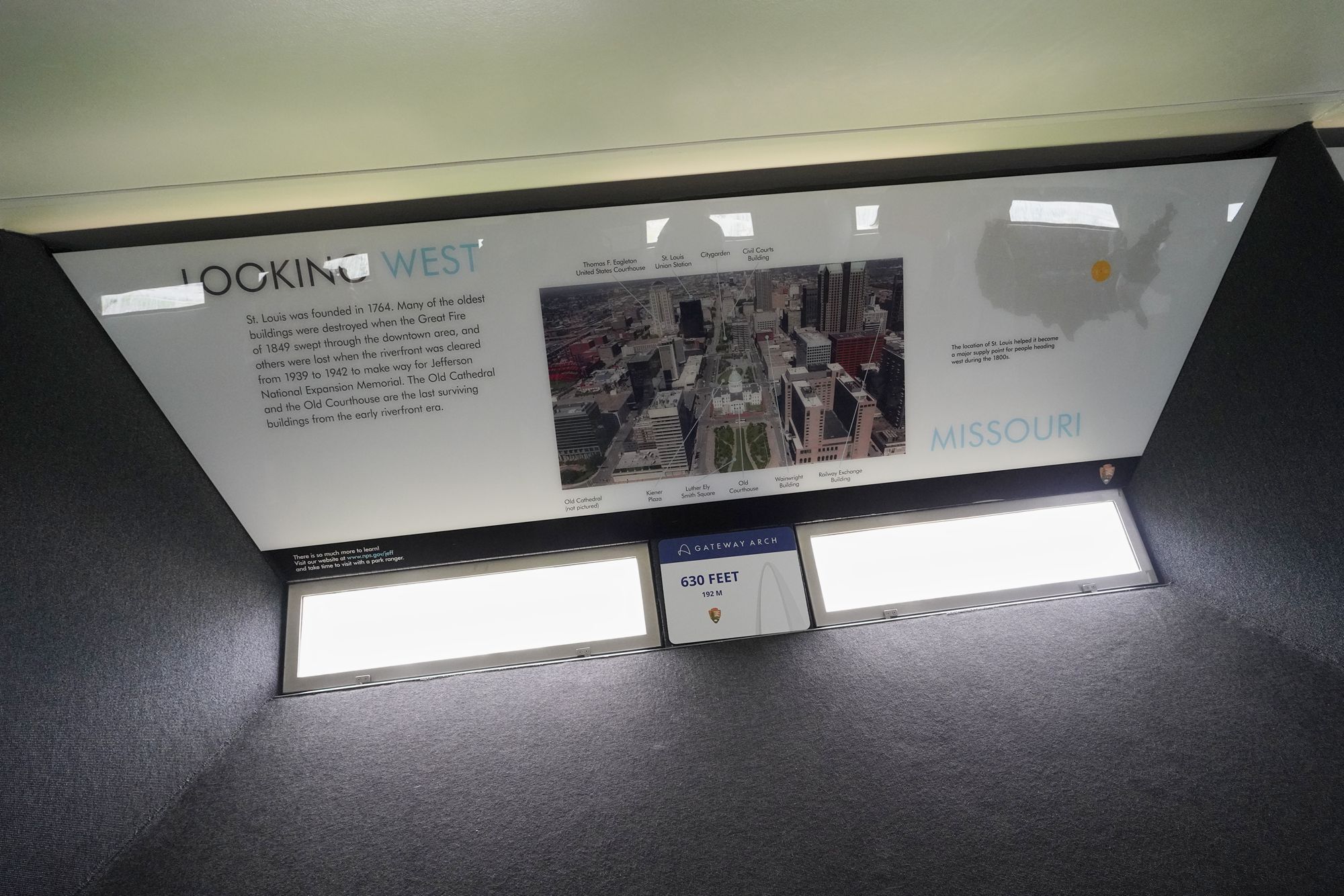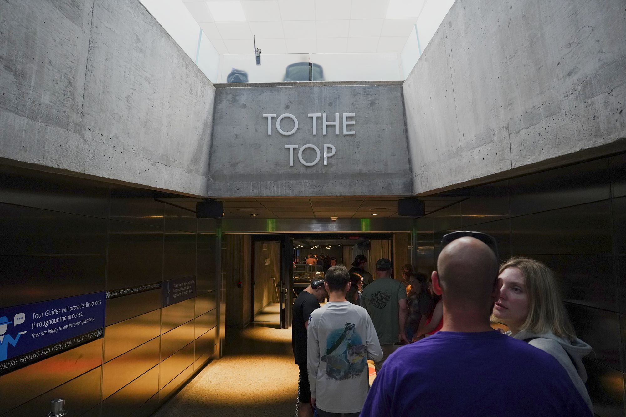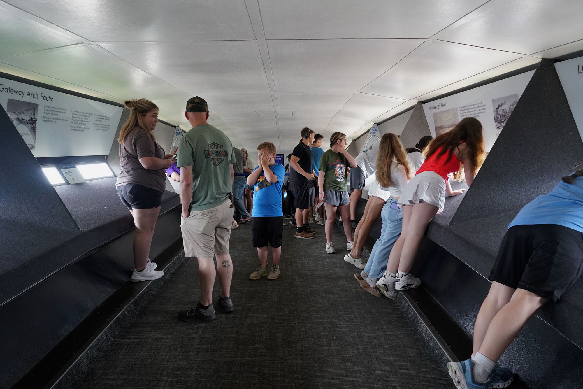At the Arch’s summit, the observation windows provide dramatic downward views.