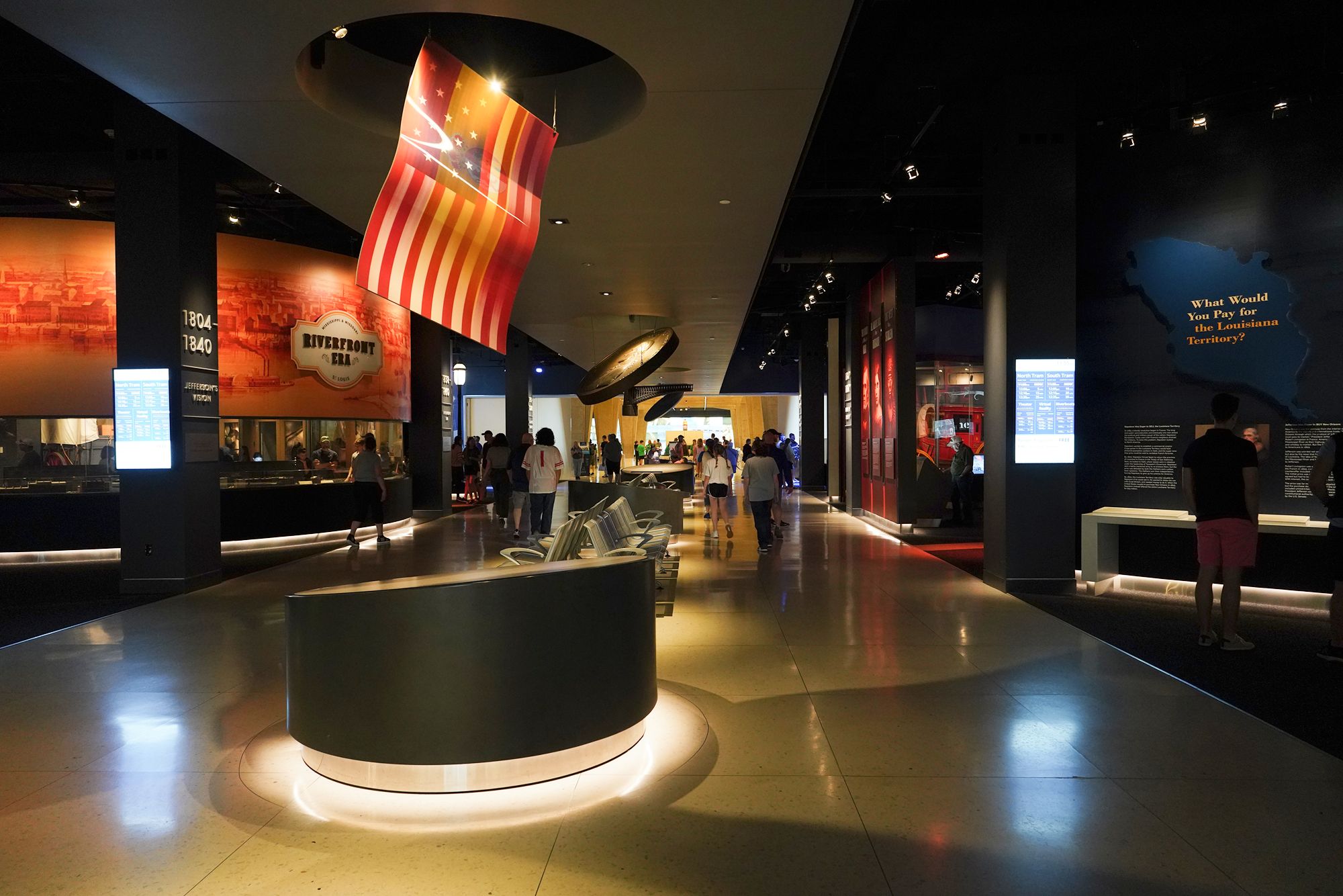 The museum beneath the Gateway Arch presents interactive exhibits on America’s westward expansion, exploring Native cultures, frontier life, immigration, river trade, and the impact of technology and conflict, all arranged along a curving path that mirrors the historical timeline leading to St. Louis’s role as the “Gateway to the West.”