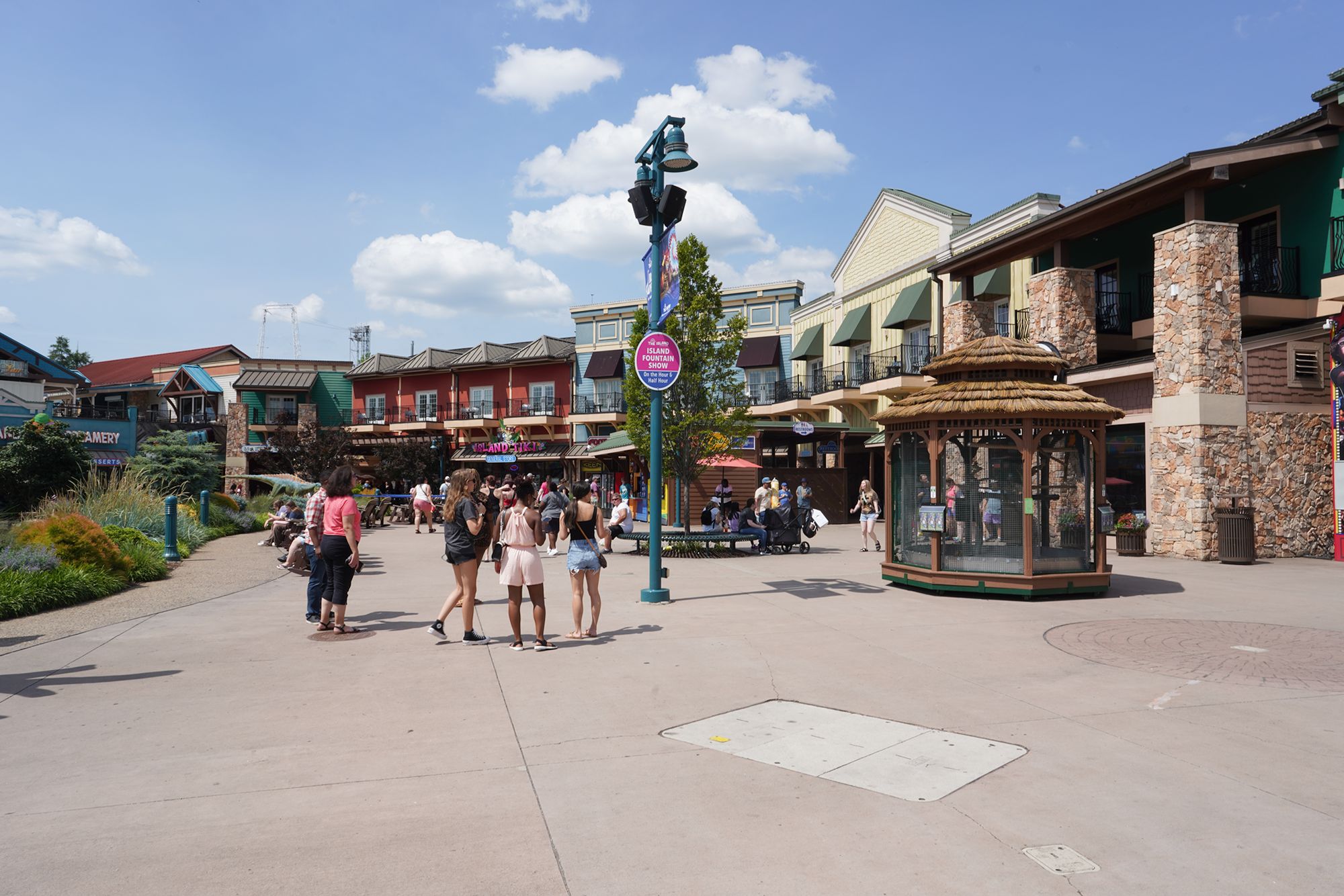 The Island in Pigeon Forge is a large entertainment complex designed for strolling, eating, and relaxing, with a mix of shops, restaurants, and attractions arranged around a central plaza.